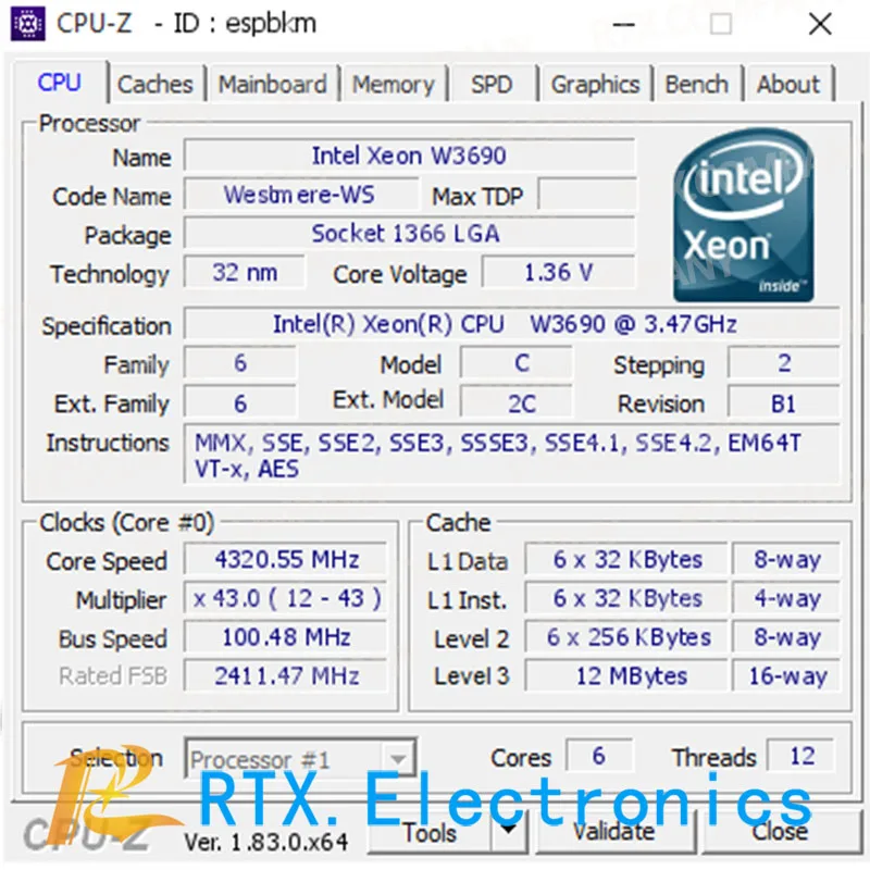 w36803.33GHz 6-Core 12-Thread 12M 130W