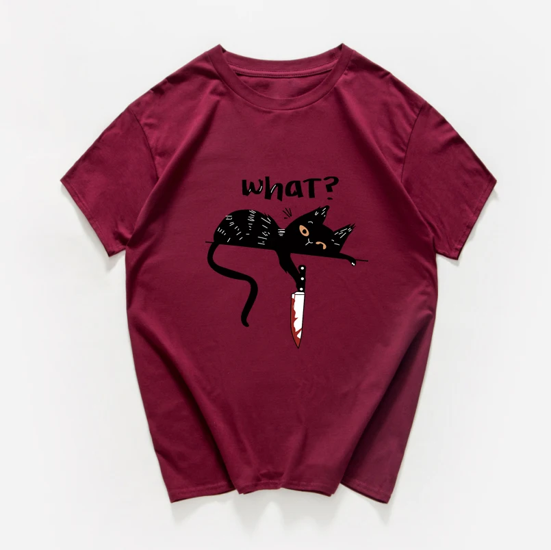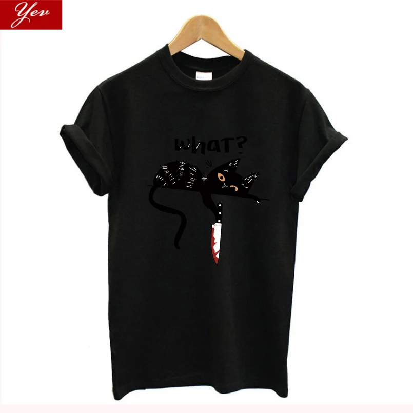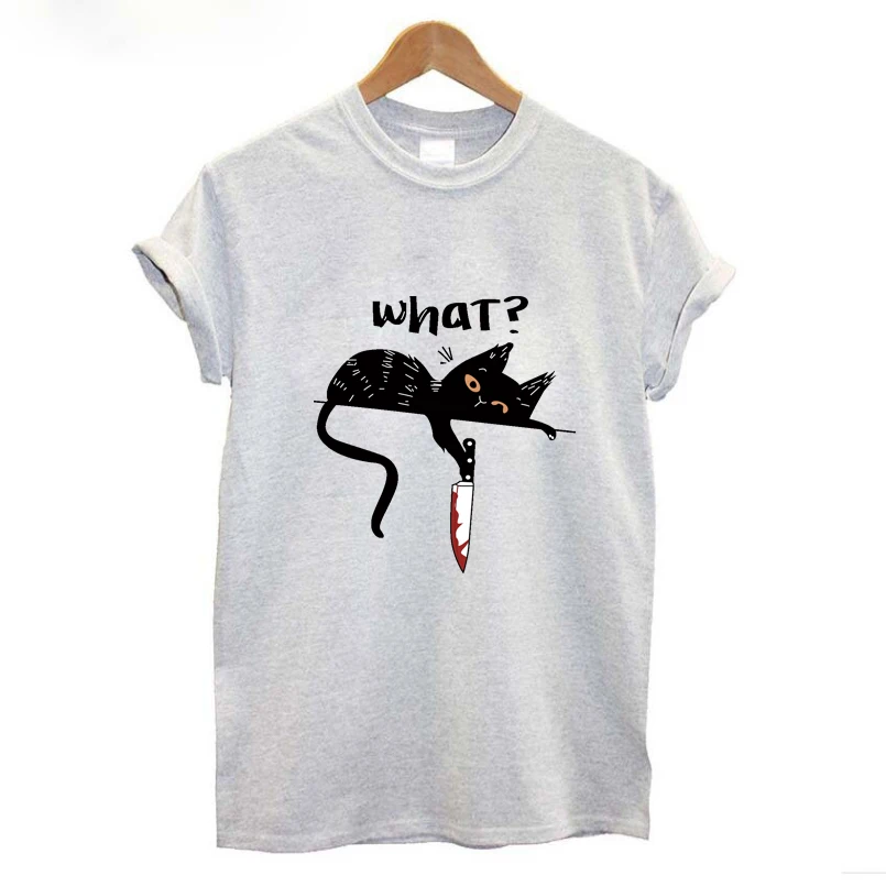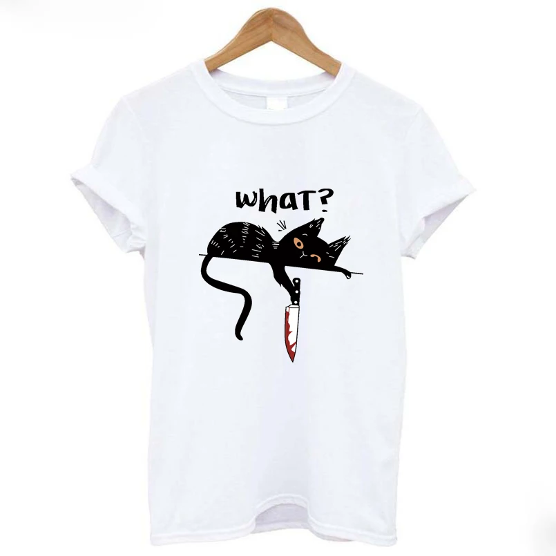 Женская футболка в стиле Харадзюку cat what Graphic, Винтажная Футболка большого размера с принтом в виде ножа кошки, уличная одежда