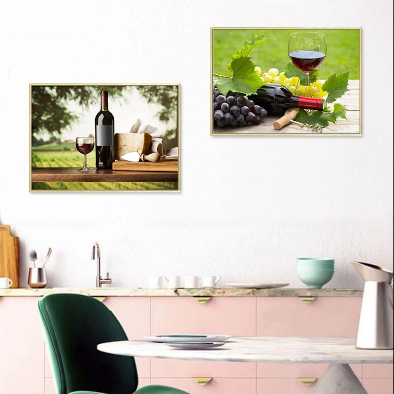 Зеленый виноград красное вино в бокале с сыром современные кухонное украшение для дома фрукты настенные художественные картины для гостиной HD холст картины