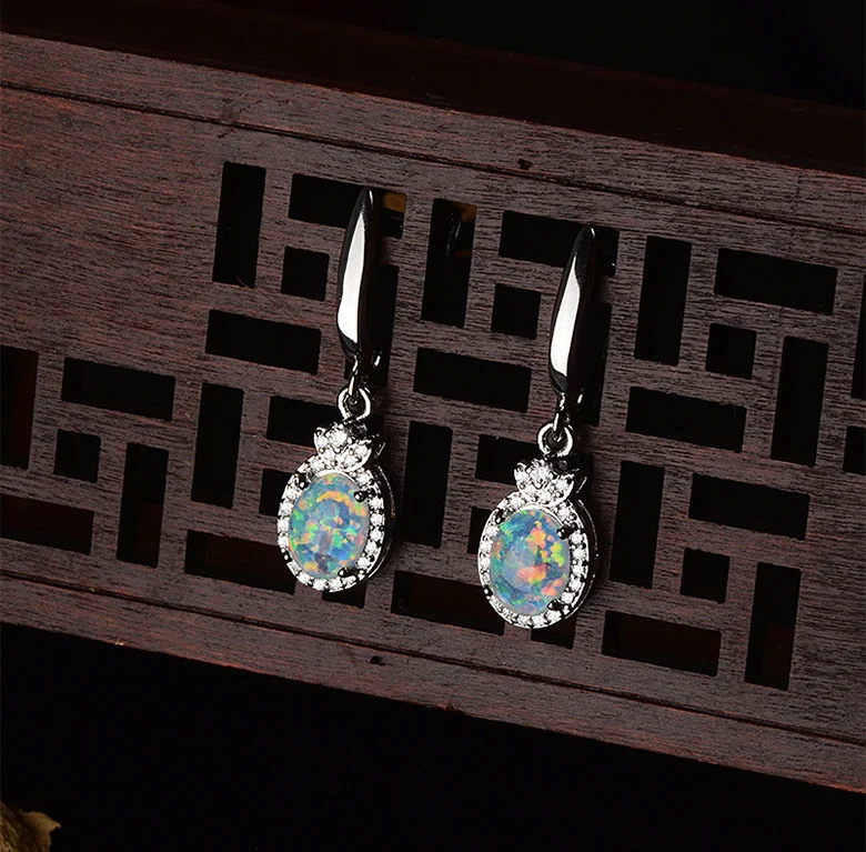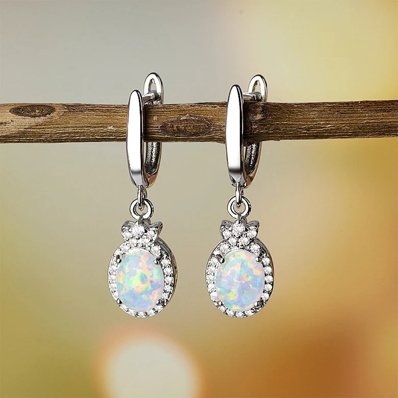 Серьги-клипсы женские из серебра 925 пробы, с натуральным опалом