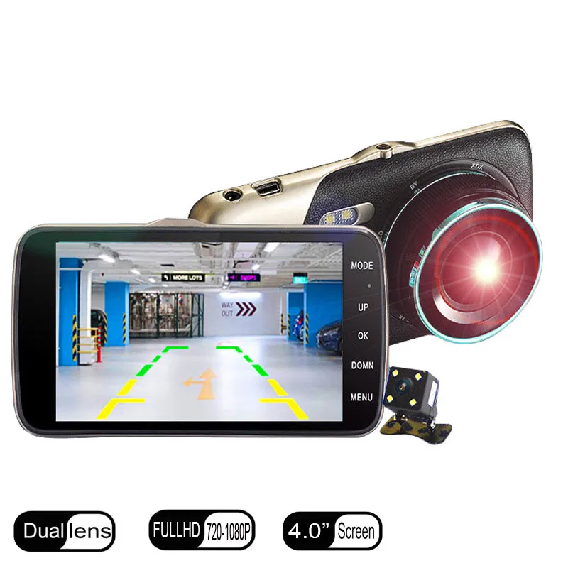 Оригинальный 4,0 дюймов IPS Экран Видеорегистраторы для автомобилей Регистраторы автомобиля Камера видеорегистратор с двумя объективами и Камера Full HD 1080P видео 170 градусов видеорегистратор душь Камера