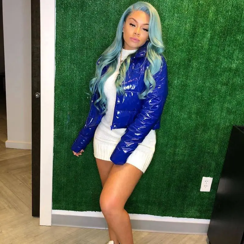 ZKYZWX размера плюс яркая ПУ кожа, Водонепроницаемый укороченный пузырь пальто для женщин теплая одежда, парка с хлопковой подкладкой, куртка, зимняя куртка с длинным рукавом