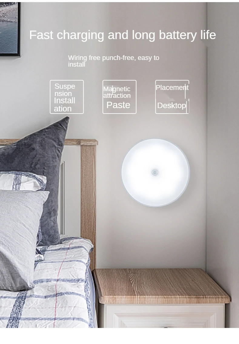 Светодиодный желтый перезаряжаемый умный ИК-датчик лампа прикроватная Спальня домашний коридор ночной Светильник