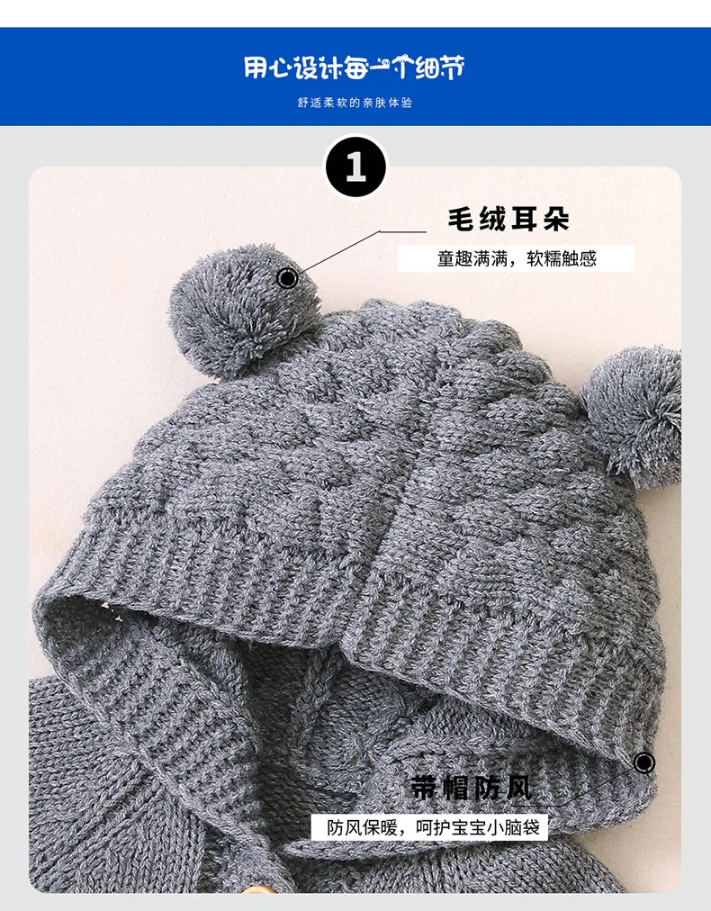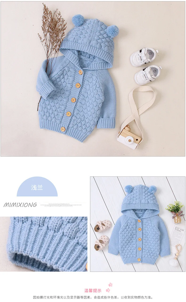 Свитер для маленьких мальчиков и девочек, одежда, зимний свитер с капюшоном, модный теплый костюм для новорожденных, верхняя одежда, новинка 2020, для 3-24 месяцев