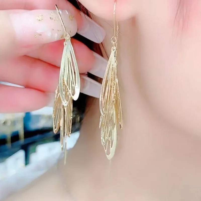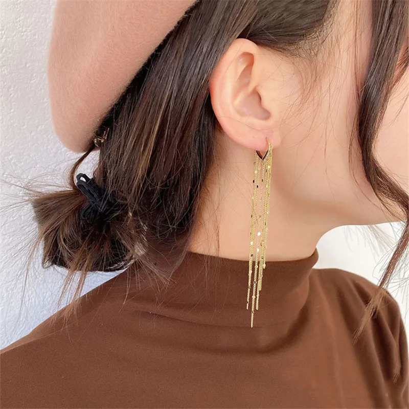 Длинные висячие серьги с кисточками для женщин Kpop милые металлические серьги Винтажные серьги корейские Модные женские ювелирные изделия подарок