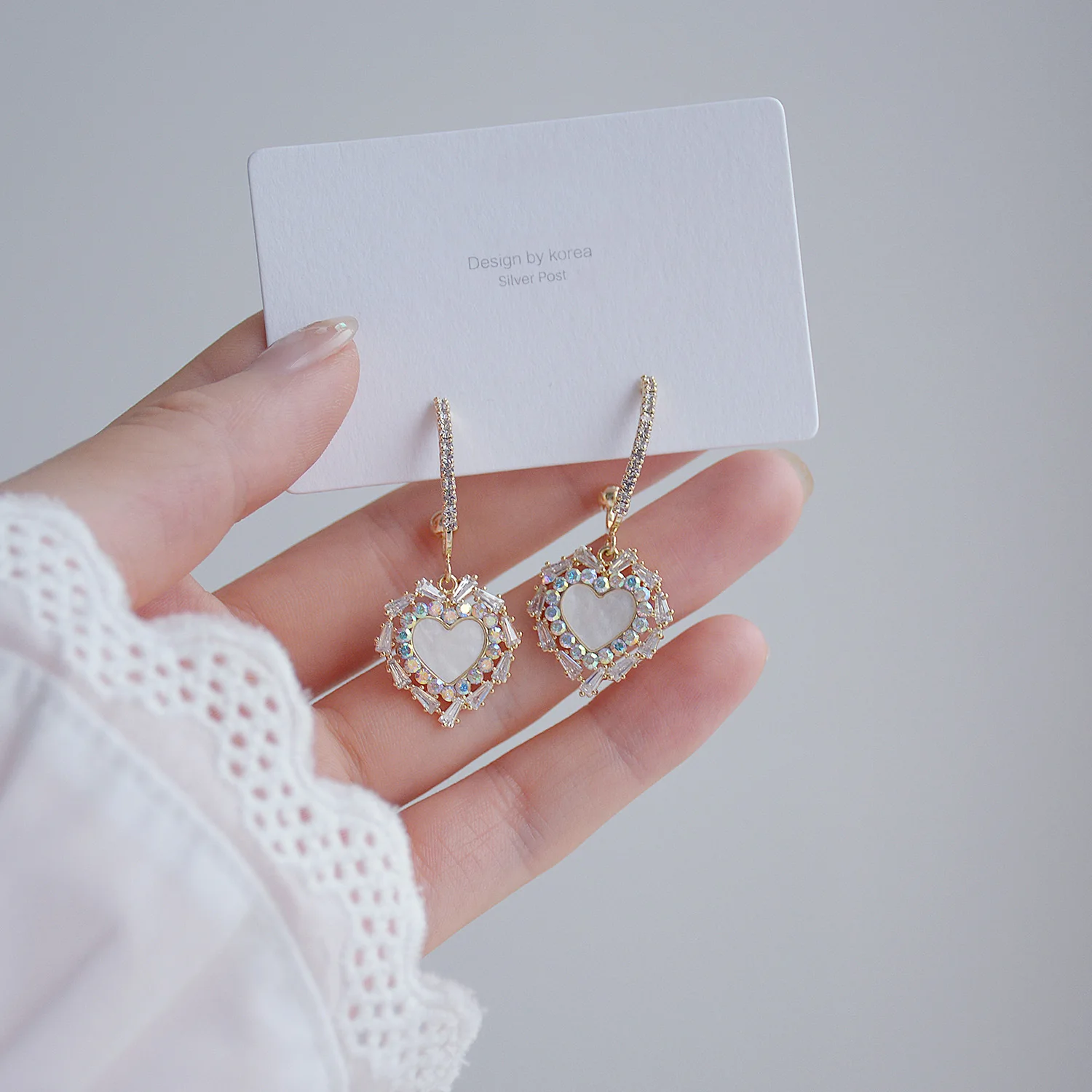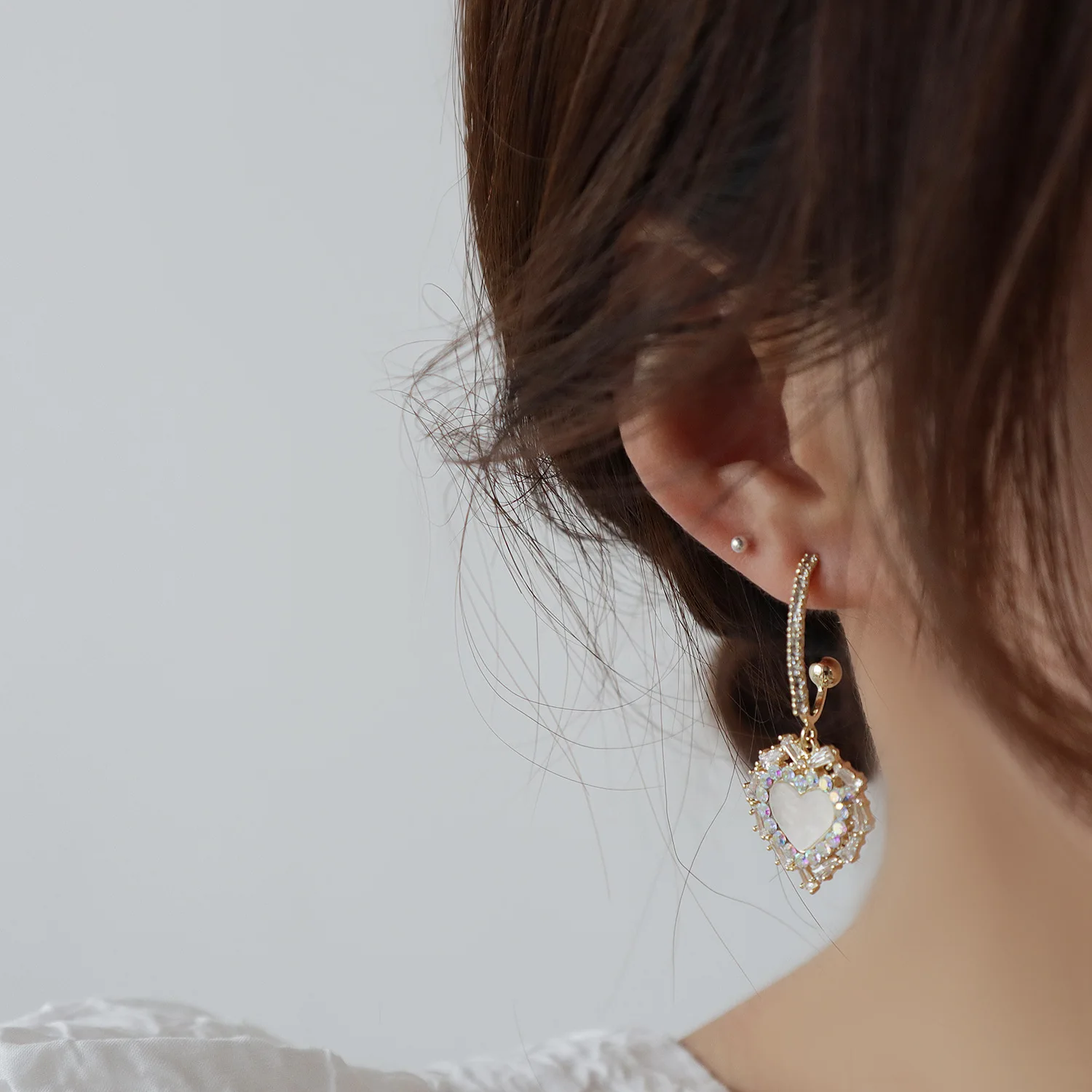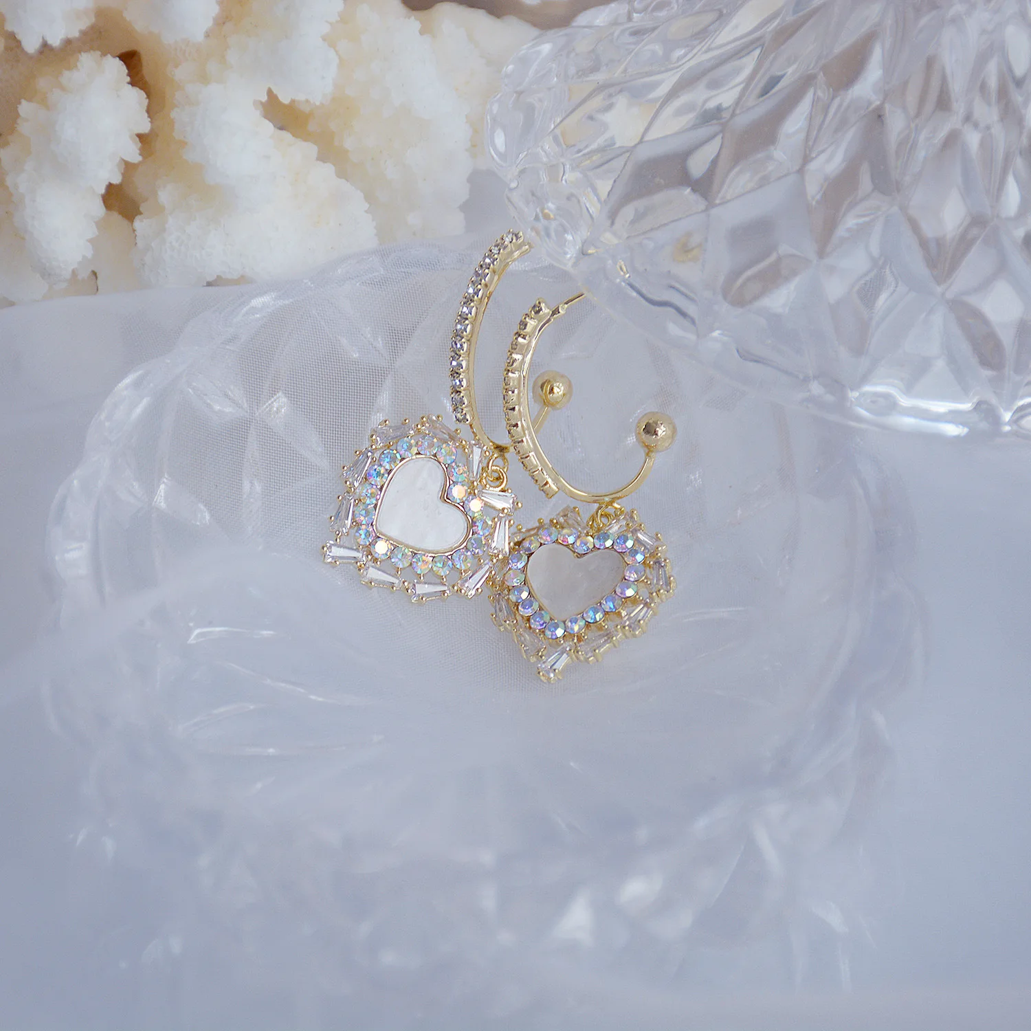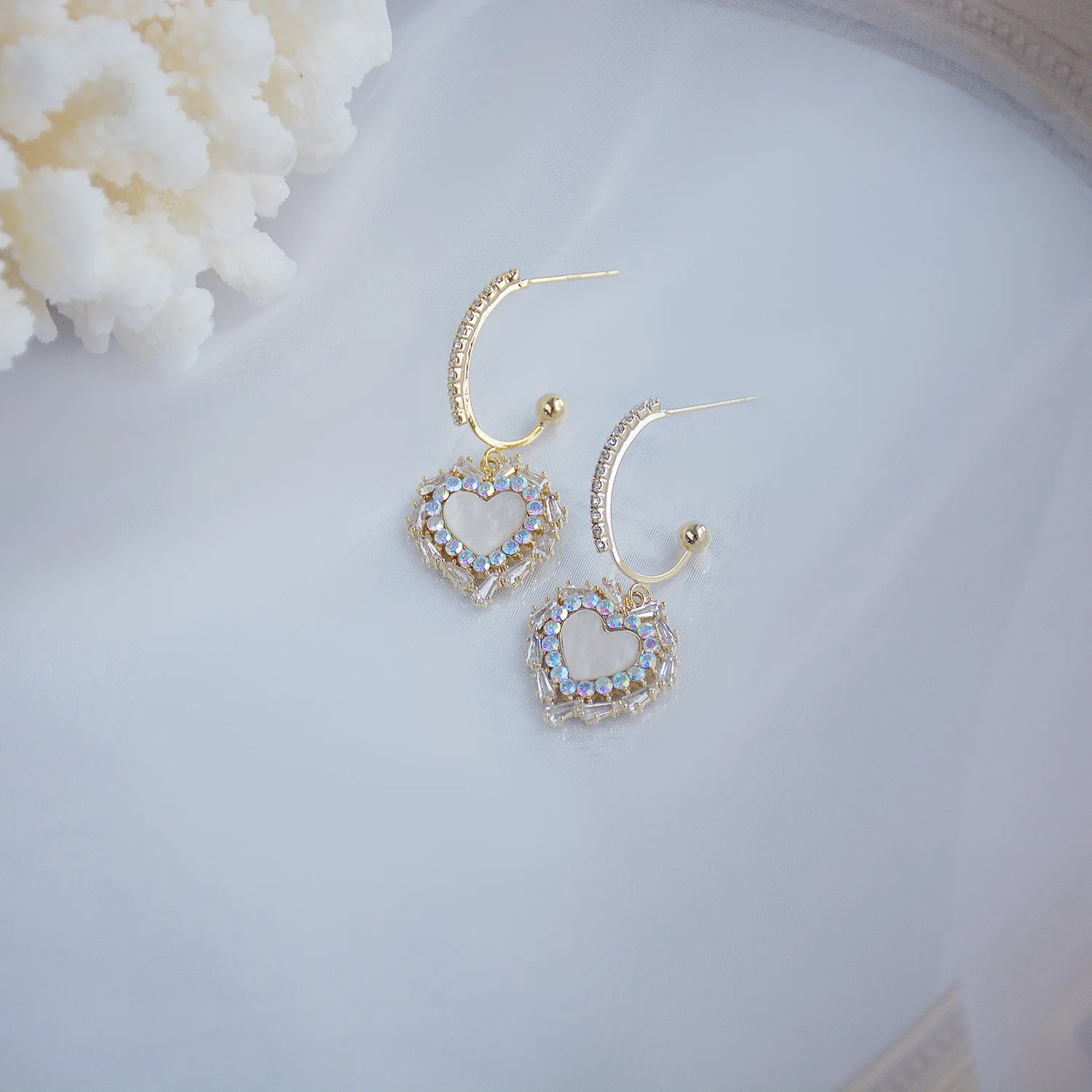 Женские серьги-гвоздики в форме сердца, с кристаллами