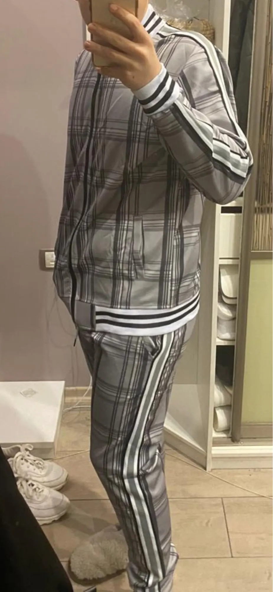 Спортивный костюм довольно хороший, но он не имеет такого же качества, которое вы можете найти в оригинальном. Ткань (полиэстер) неплохая, но швы не очень хорошие. Это размеры как реклама: я Размер XL в ЕС и это означает 4XL. Цена довольно справедливая, но, если вы можете купить оригинал. Быстрая доставка и хорошая упаковка.