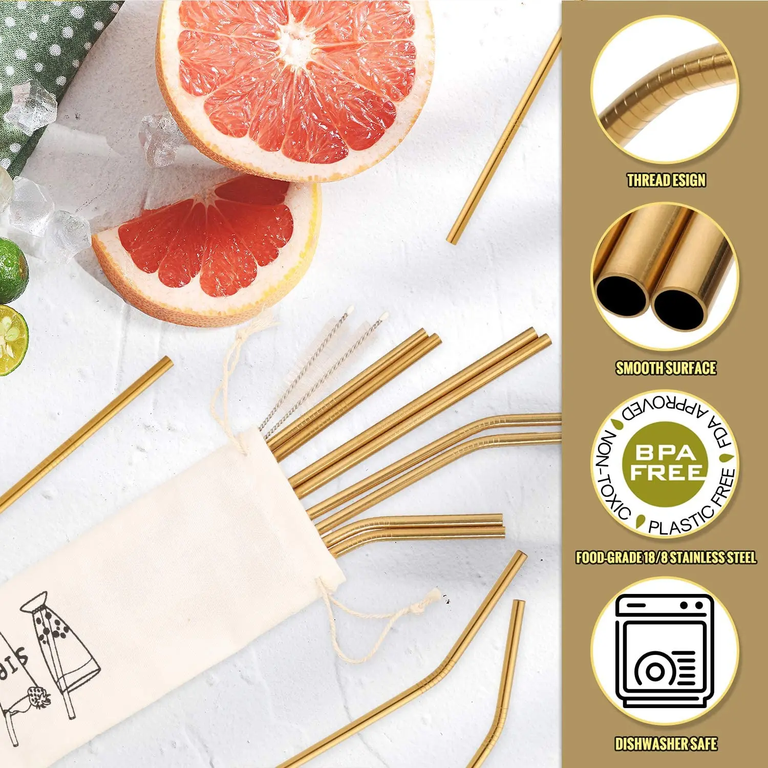 12 шт. 304 трубочки из нержавеющей стали, длинные металлические трубочки для питья, для тумблера, брикет, посуда для напитков, коктейлей