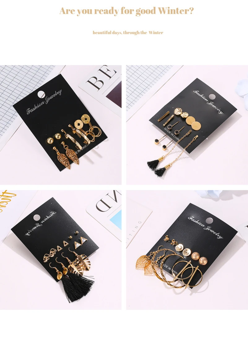 Серьги-подвески женские с полым крючком, 6 шт.комплект