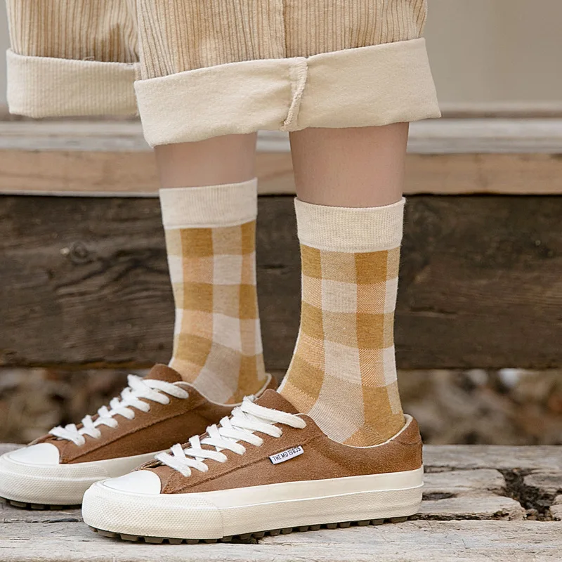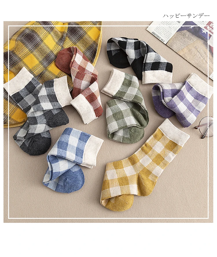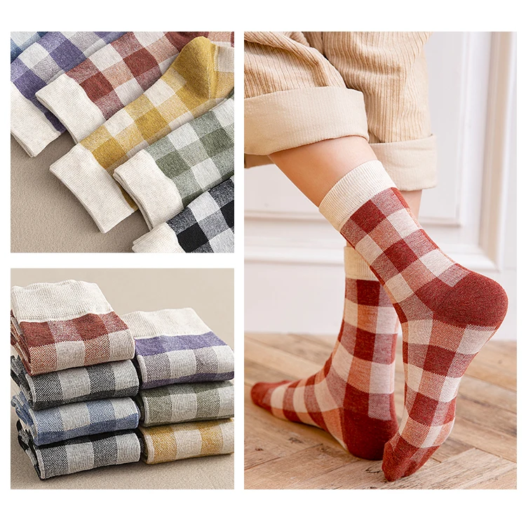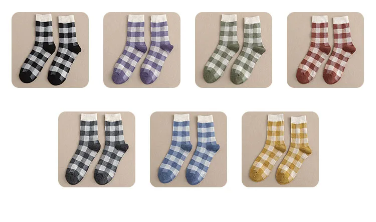 Классические носки из 100% хлопка, хит продаж, женские носки в клет...