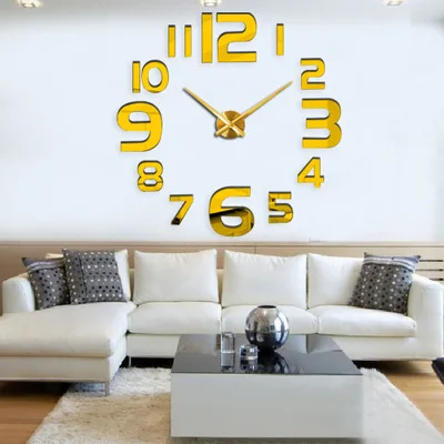 Акриловые зеркальные настенные часы, большие кварцевые украшения сд...