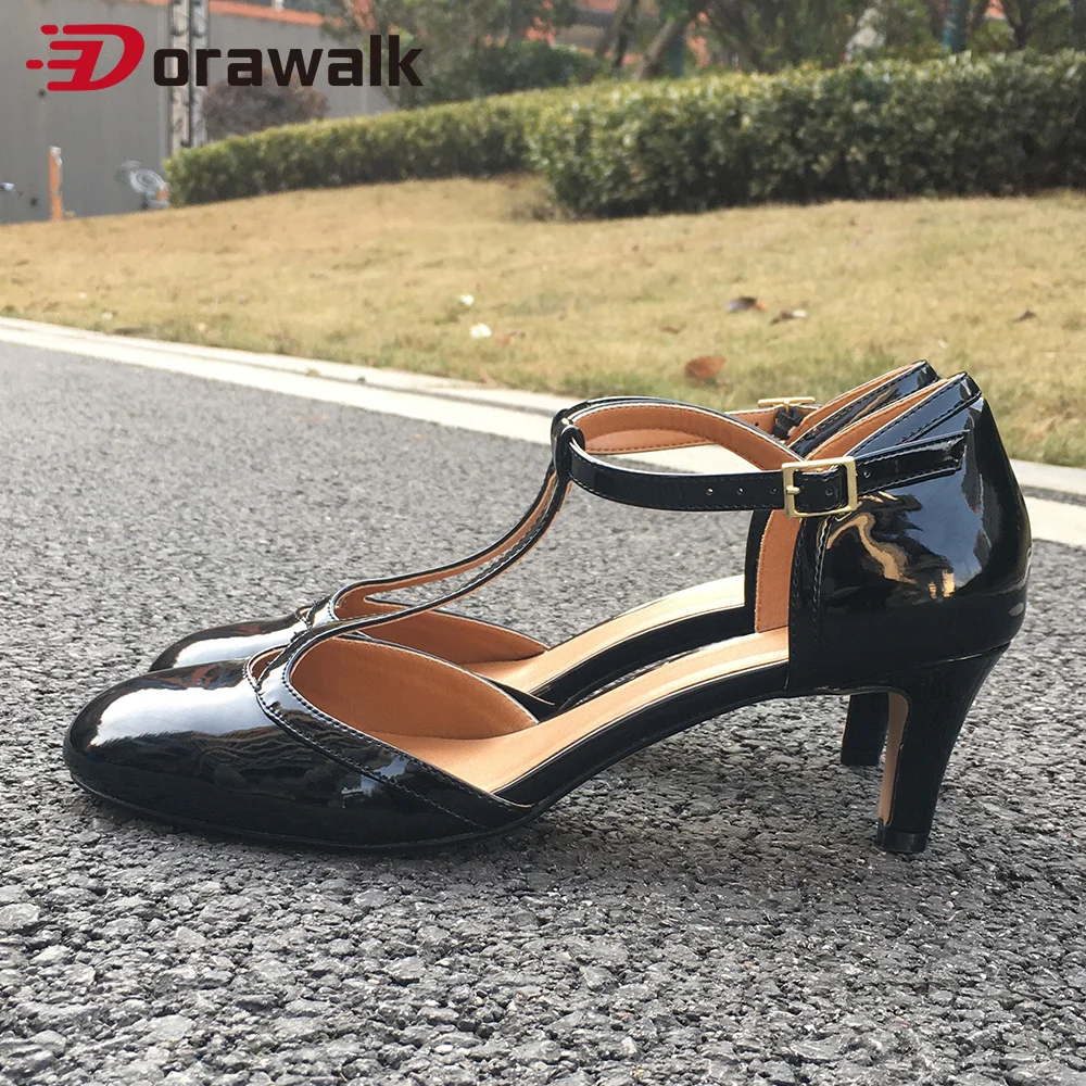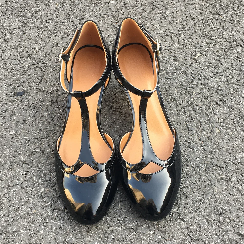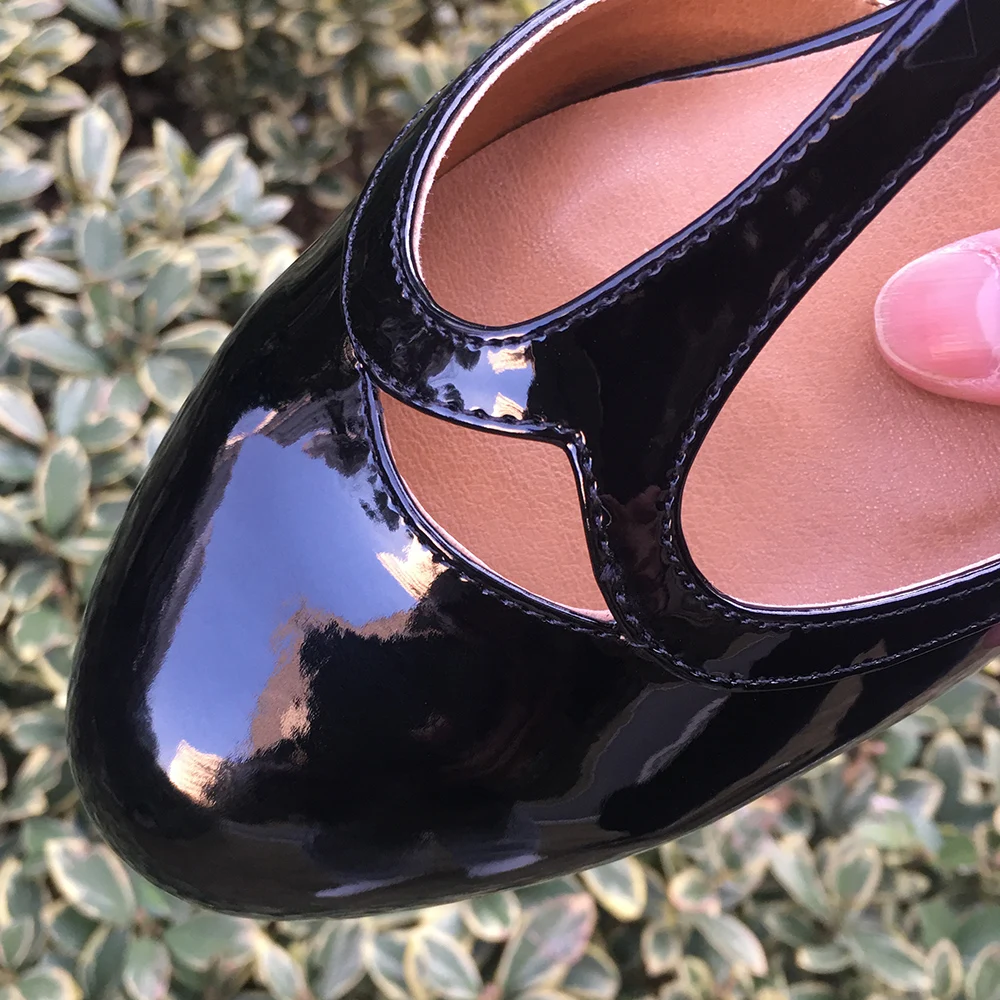 Женские туфли на высоком каблуке 6 см с Т-образным ремешком и круглым носком; Фетиш насосы туфли унисекс с перекрестными ремешками; Большие размеры 48