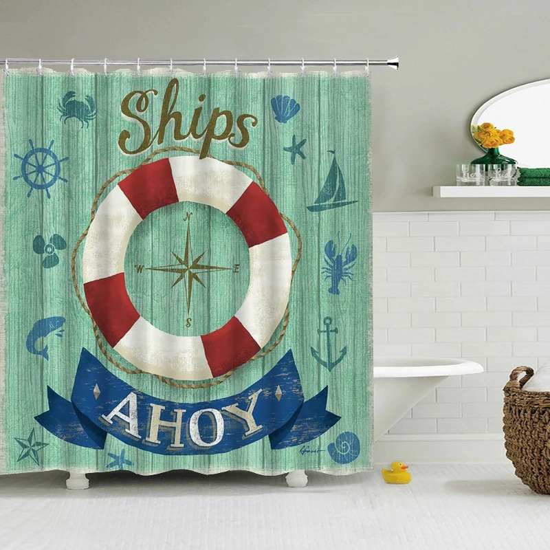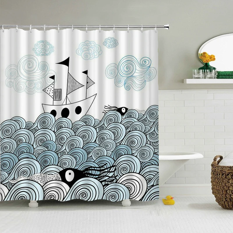 Мультфильм волны лодка мальчик 3d занавески для душа Ванная комната водонепроницаемые занавески для ванной полиэстер ткань печатный коврик для ванной