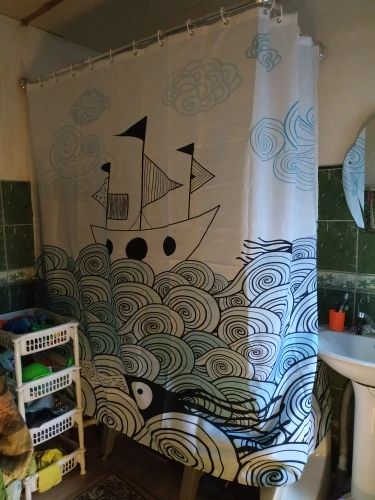 Очень хорошая занавеска для ванной, материал не выглядит дешево, не имеет неприятного запаха. Моему сыну очень нравится! Доставка была быстрой в Австралию, менее 3 недель.