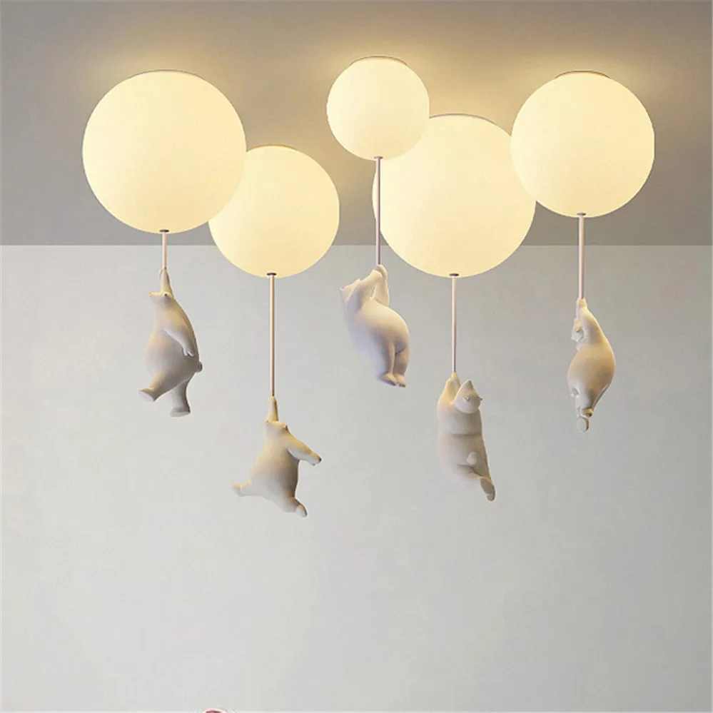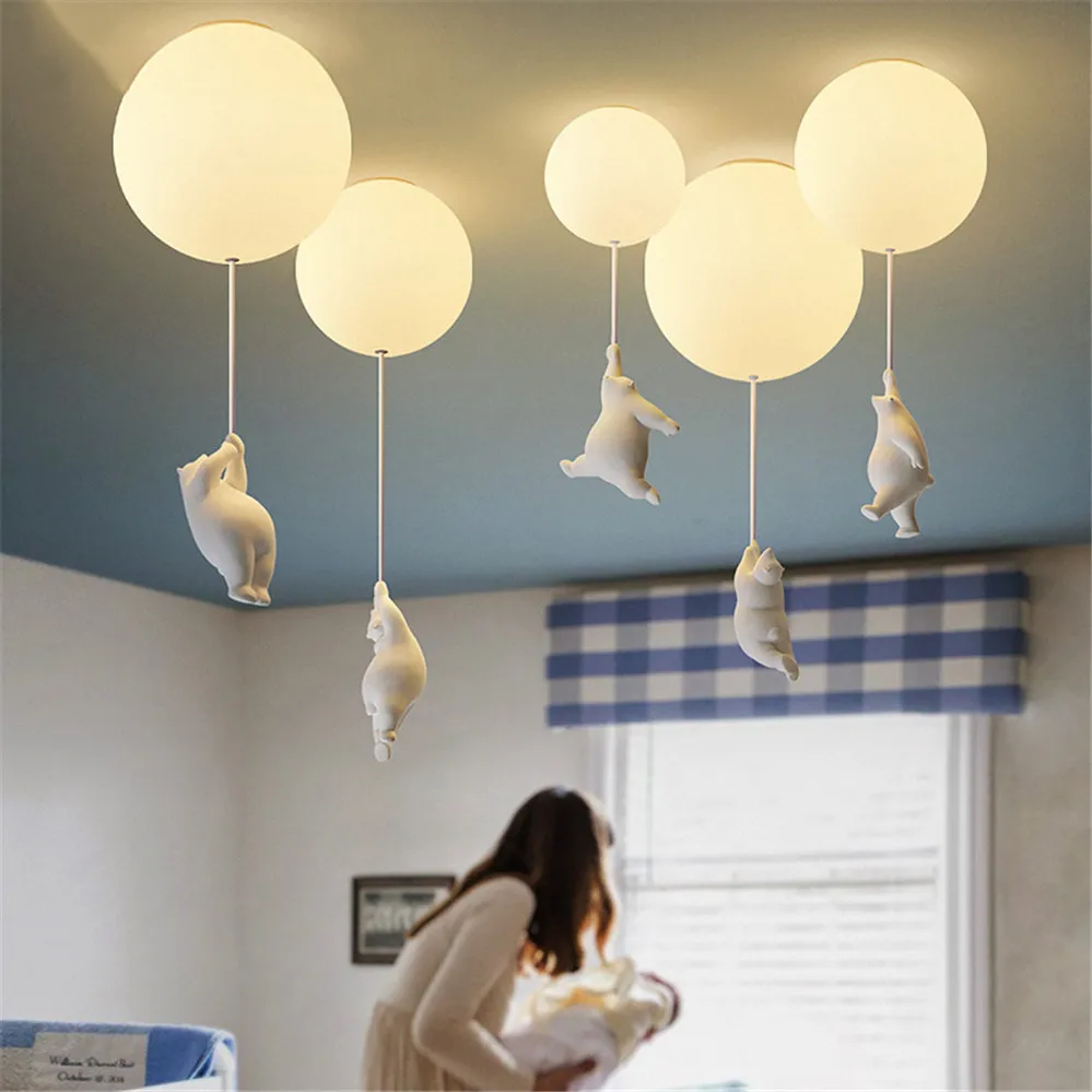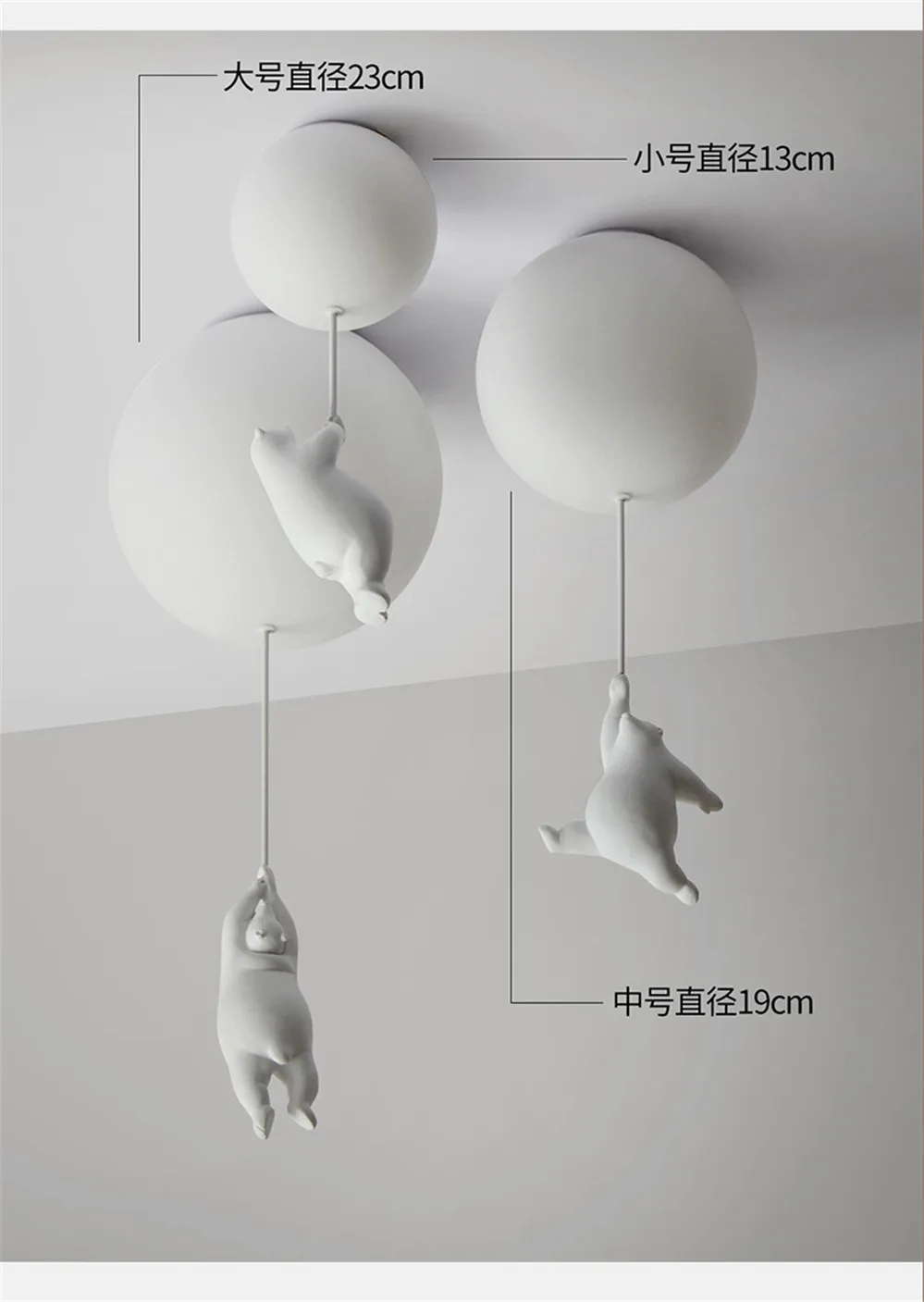 Скандинавский подвесной светодиодный потолочный светильник Polar Bear для детской спальни, креативный светильник, стеклянный шар для детской комнаты