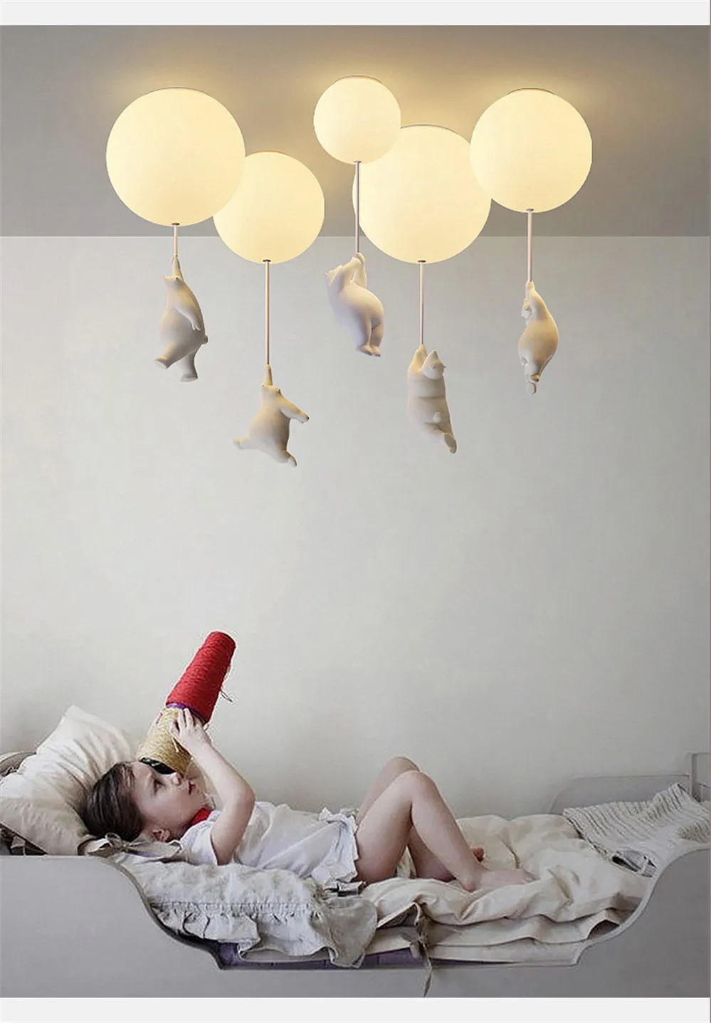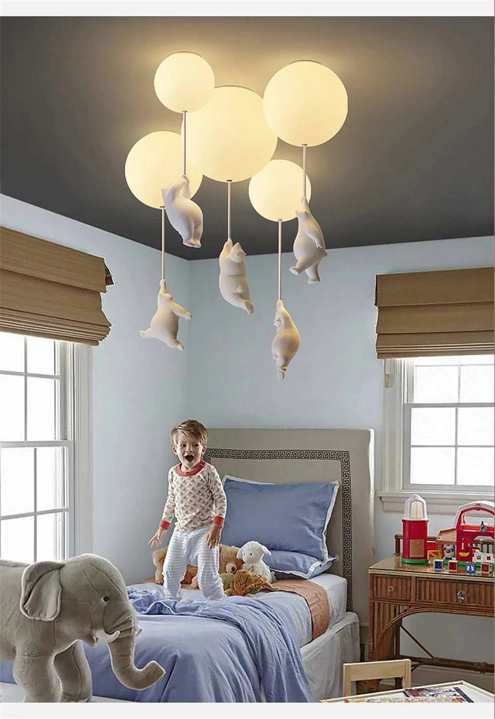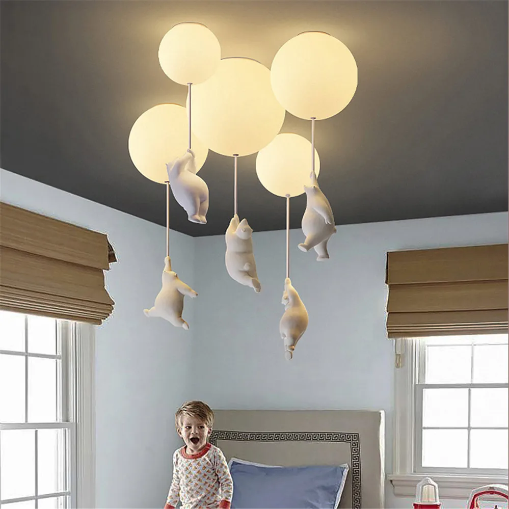 Скандинавский подвесной светодиодный потолочный светильник Polar Bear для детской спальни, креативный светильник, стеклянный шар для детской комнаты