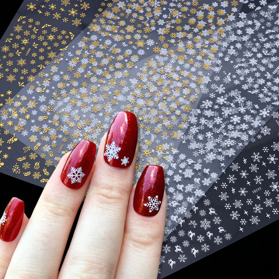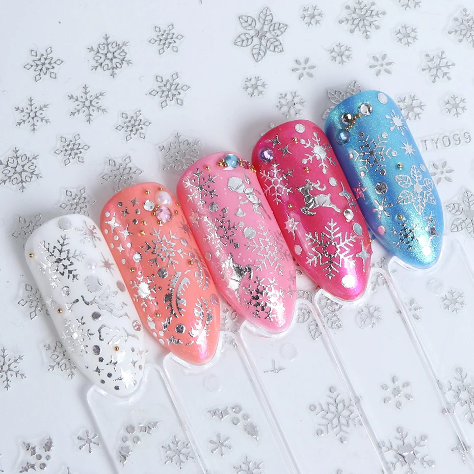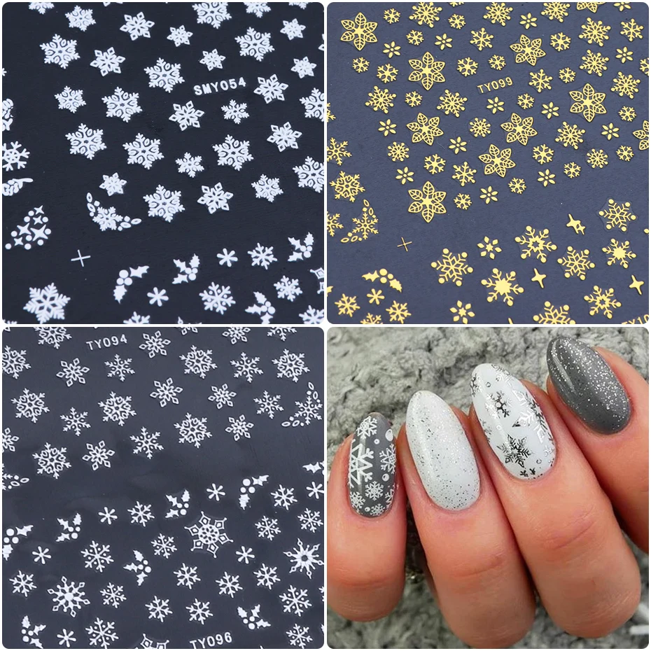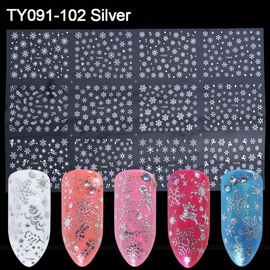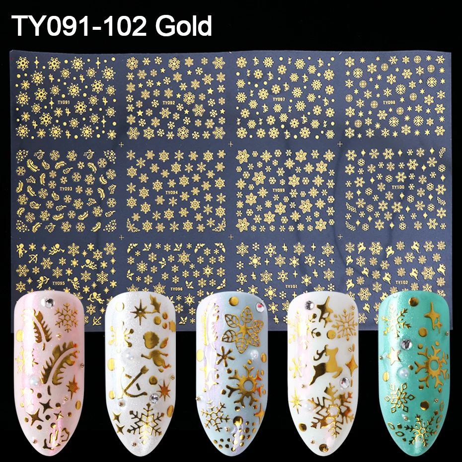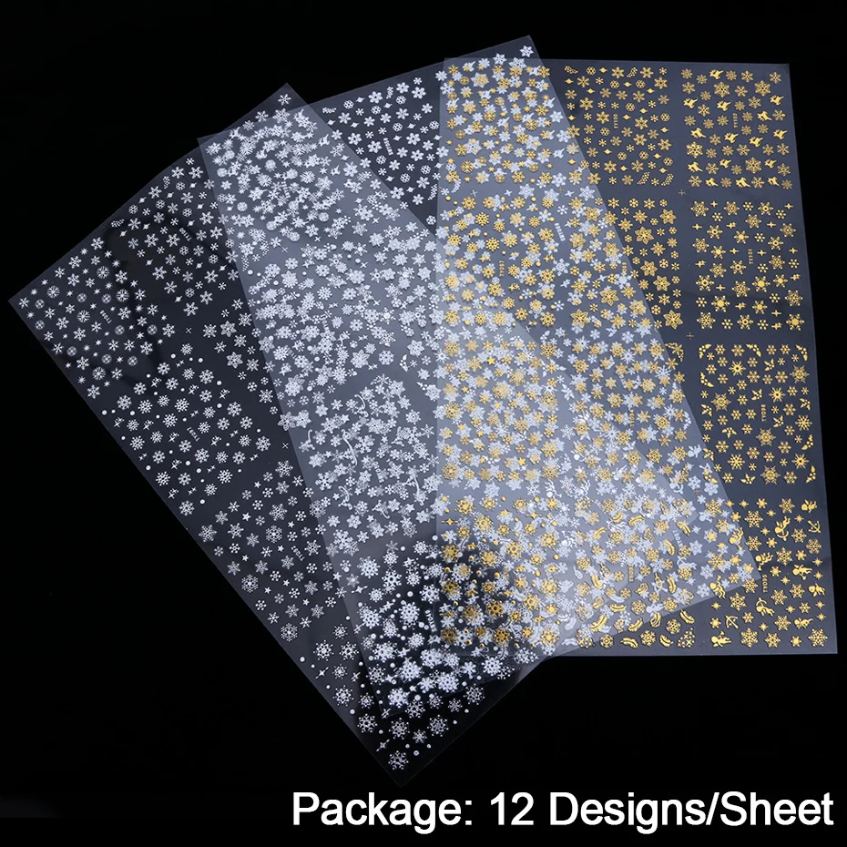 Слайдеры для маникюра, 12 шт., снежинка для ногтей наклеек, рождественские 3d-рисунки, наклейки на пленка для ногтей, TRTYSMY-1