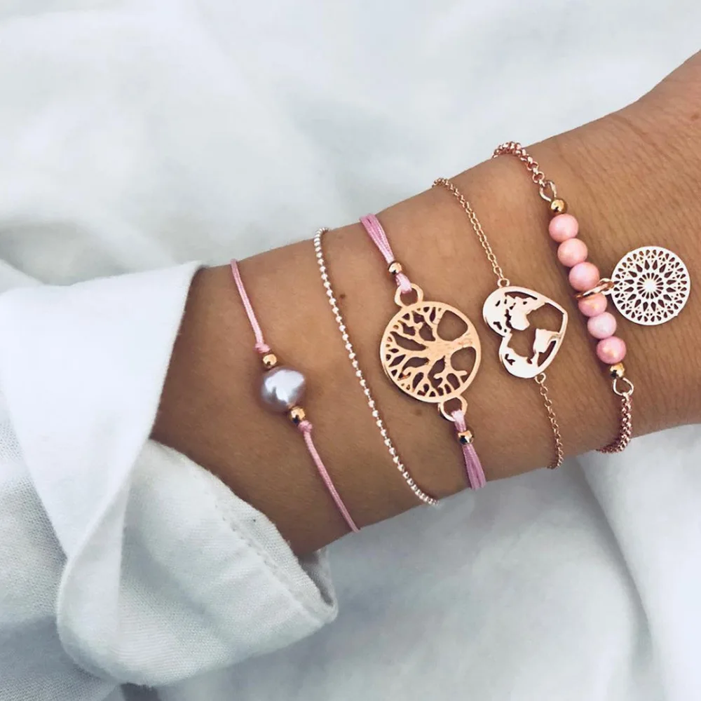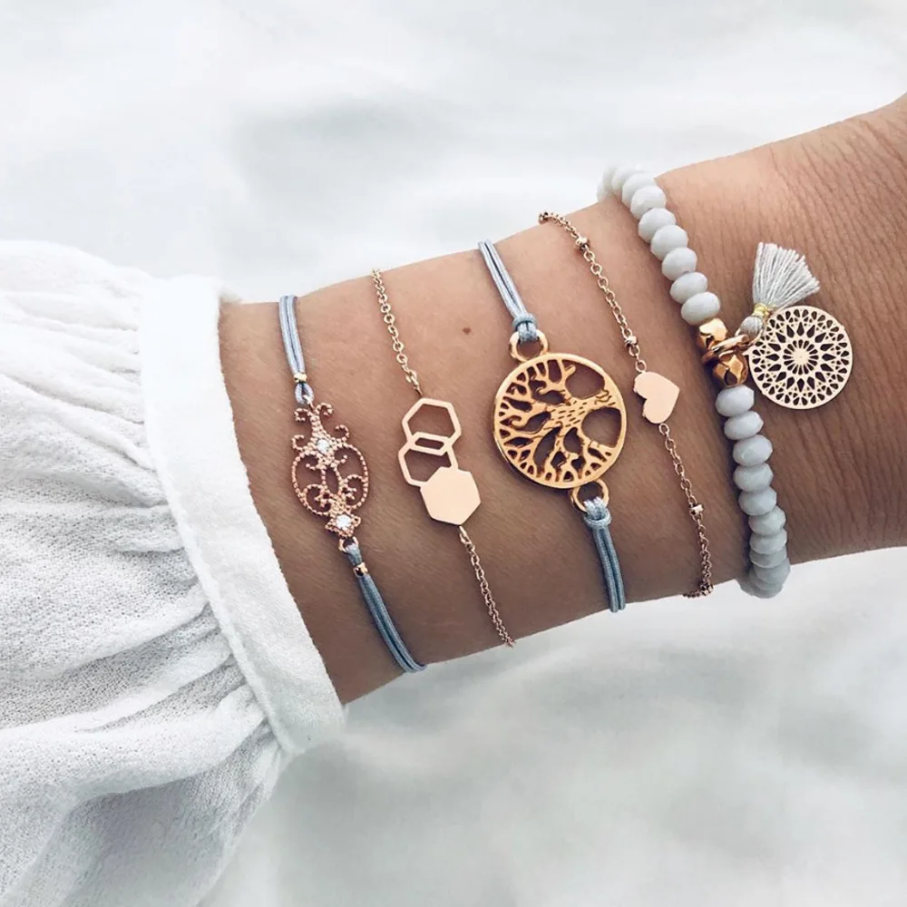 Богемный ручной работы из бисера цепочка Браслеты Набор для женщин Дерево Сердце Луна подвеска Компас браслет Дамская мода ювелирные изделия подарок