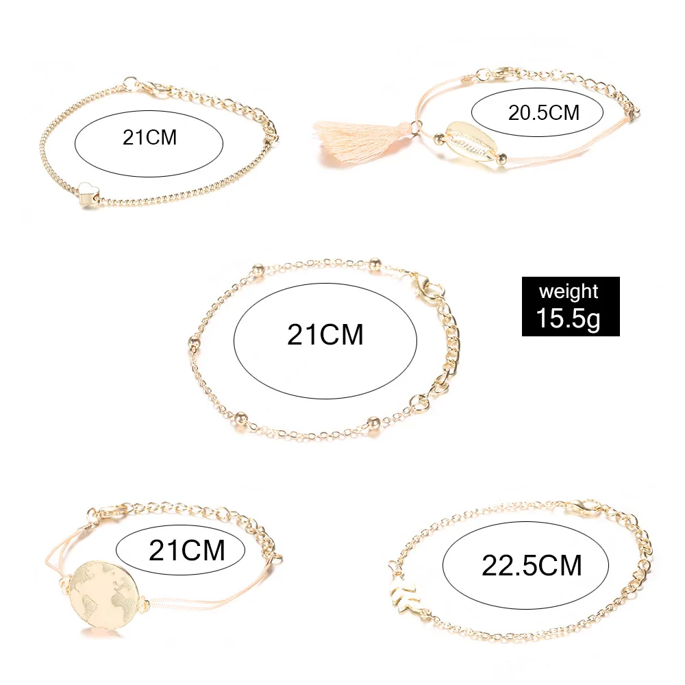 5 шт.компл. богемный Комплект браслетов с подвесками в виде ракушек...
