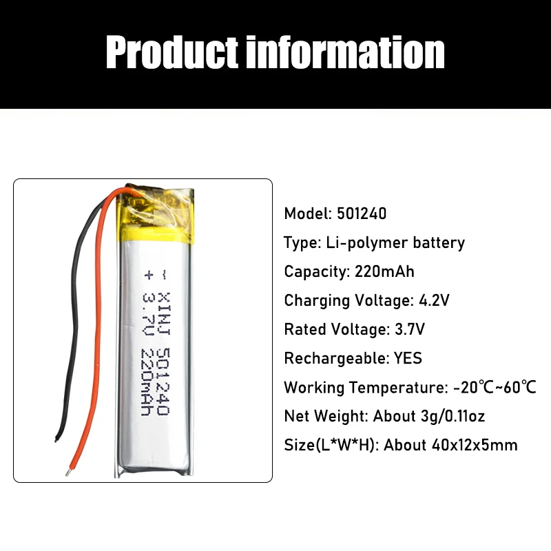 Литий-полимерная аккумуляторная батарея 3,7 в, 220 мАч, 501240 литий-полимерные батареи 501240 для GPS Bluetooth наушников MP3 MP4 051240