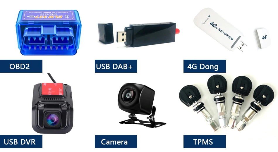 Поддержка внешнего автомобильного воспроизведения, Android Auto,DAB +,Bluetooth,OBD2, камера заднего вида, USB DVR