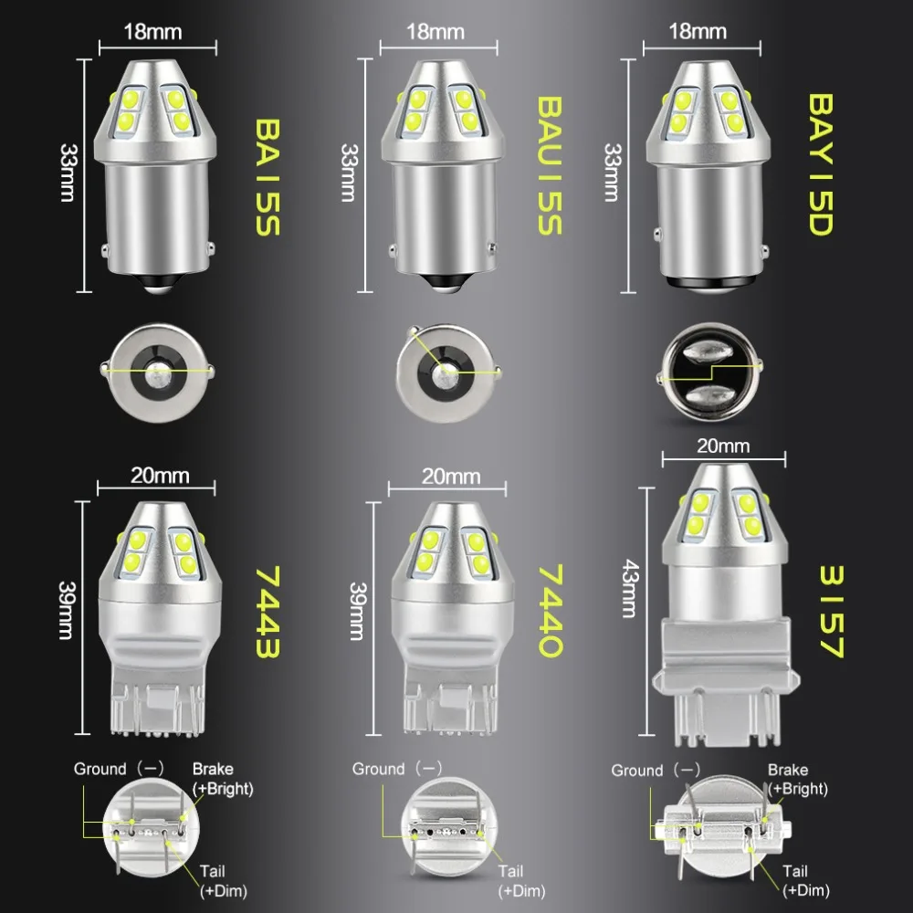 P21W BA15S (1156) BAU15S светодиодный красный белый стоп-сигнал T20 7440 7443 W21W W215W Автомобильный указатель поворота T25 3157 P27W 10SMD светодиодный 12 В