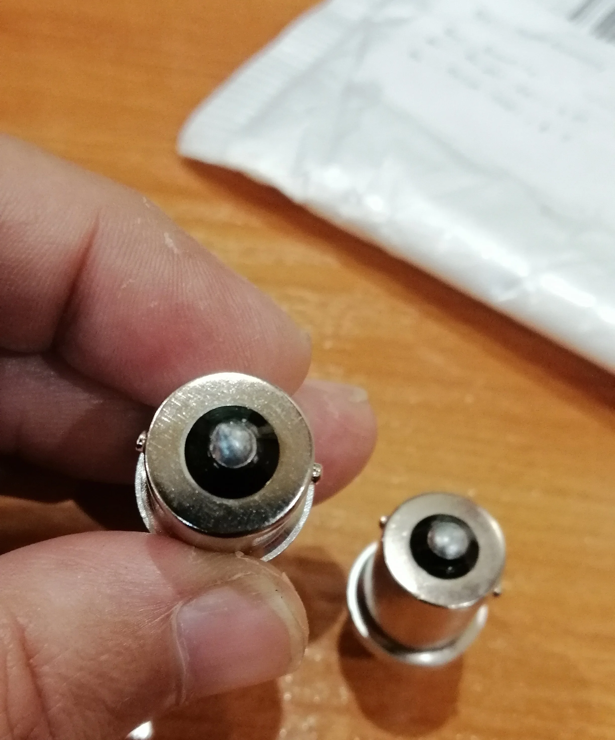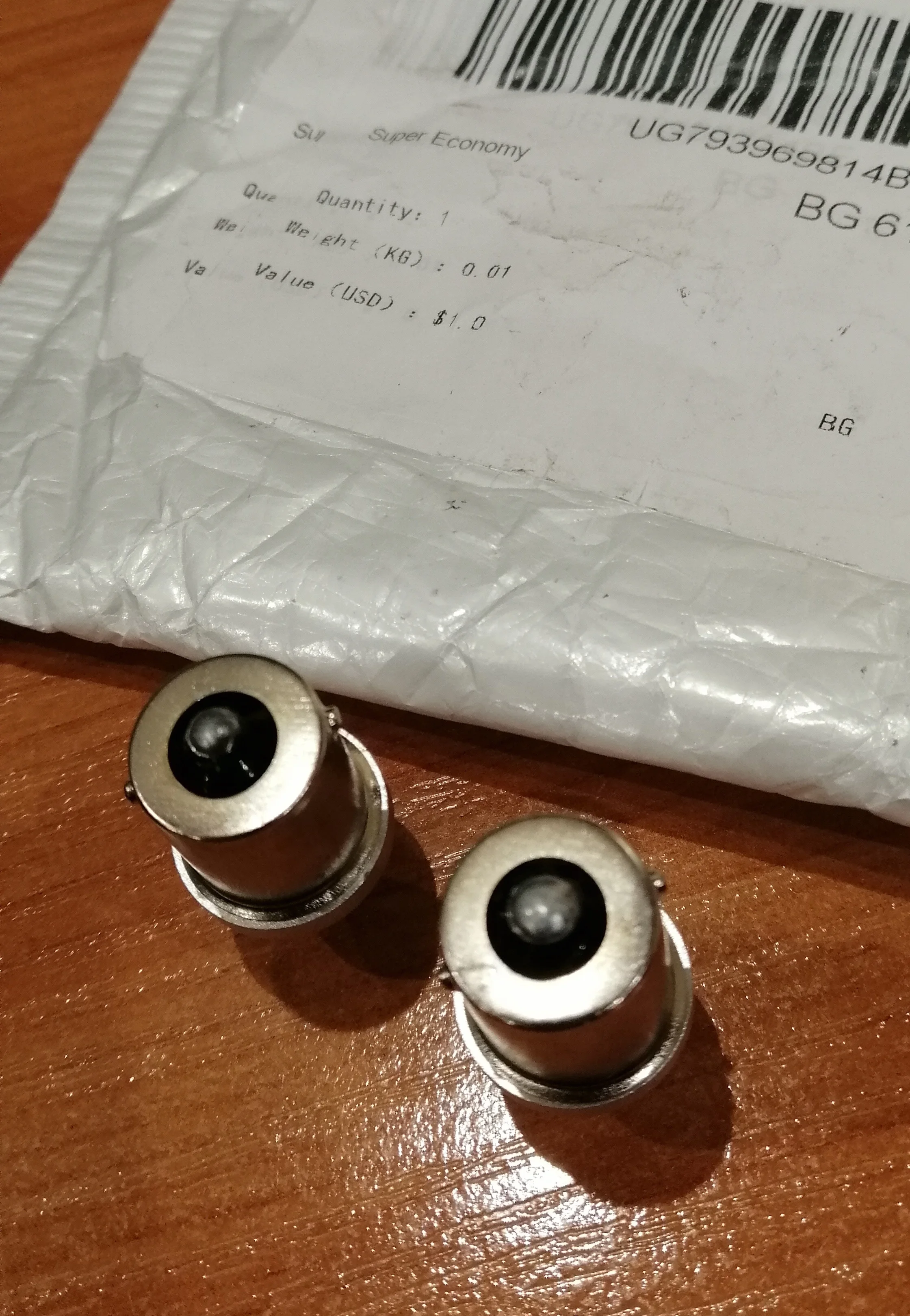 Получил за 1 мес. В одной посылке. Светит ярко и приятно, но... цоколь не совсем подходит, точнее, не вкручивается доконца, как галогенка P21W. Главное работает. Если сгорит, сразу напишу тут.