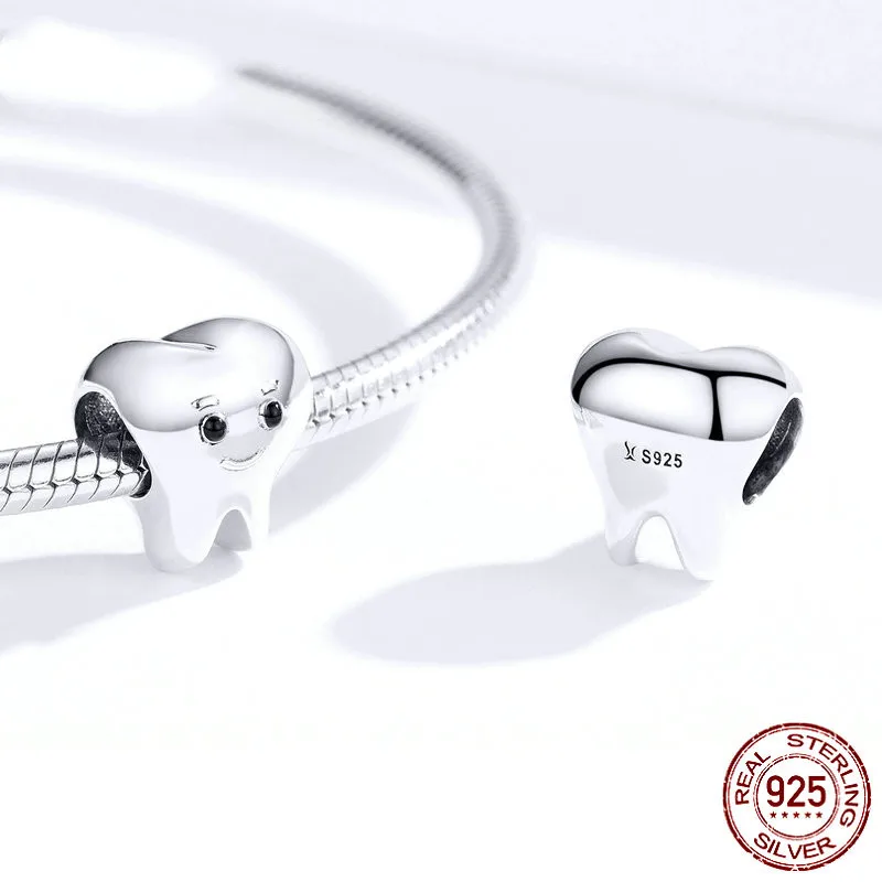 Зубные бусины BISAER 925 пробы серебряные милые зубные Подвески зуб...