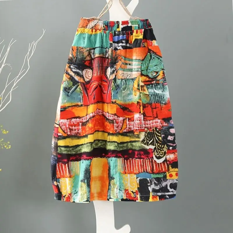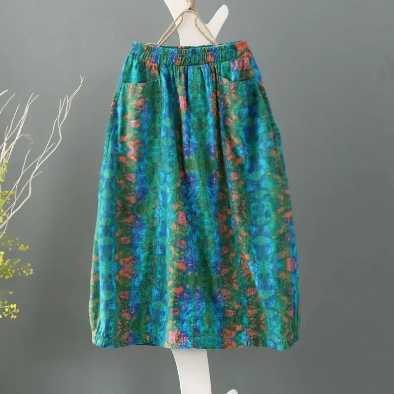 Женская хлопковая Юбка-миди, с принтом и высокой талией, размера плюс