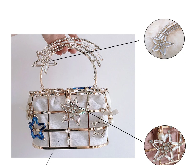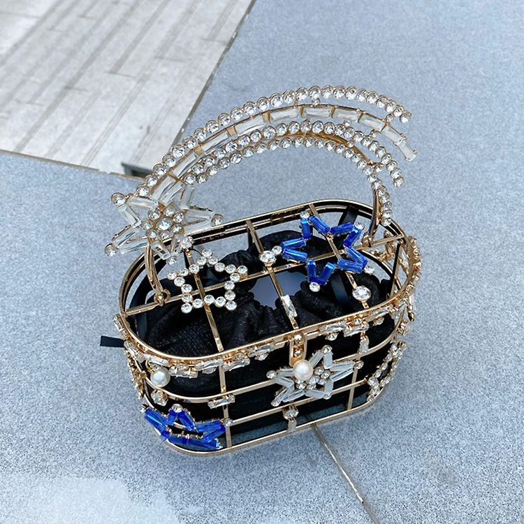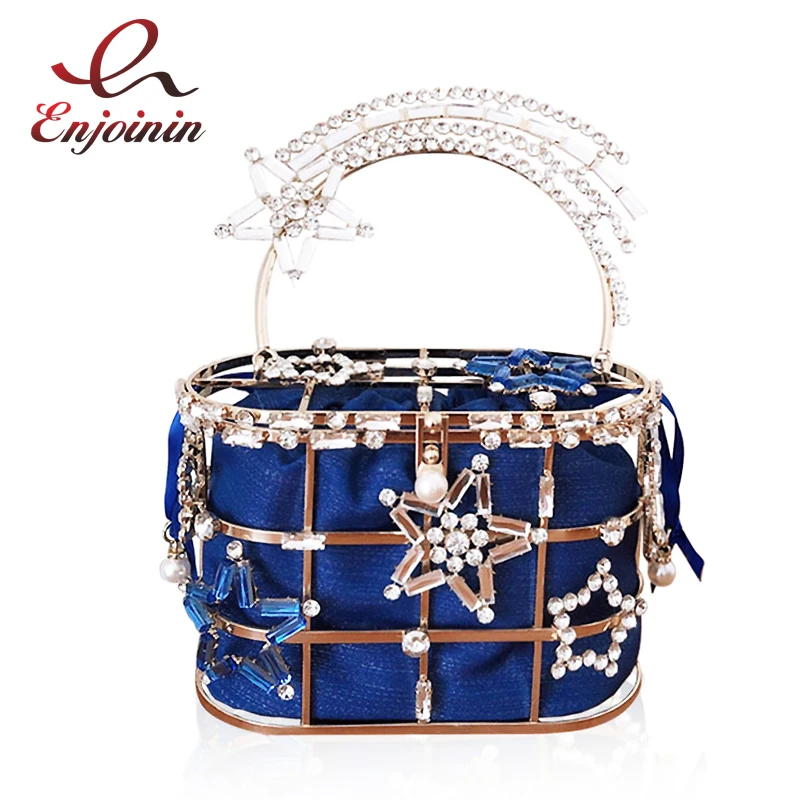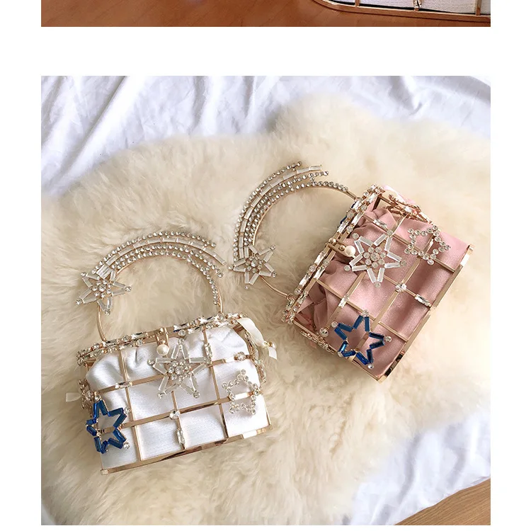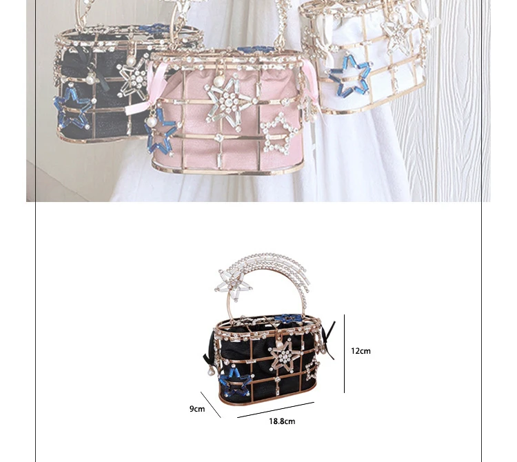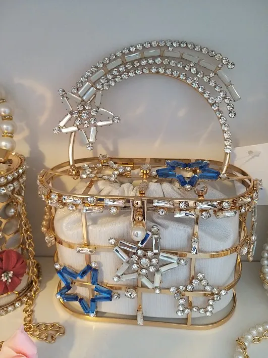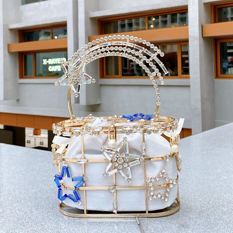 Роскошная металлическая корзина со стразами, женский клатч вечерние, модные кошельки и сумочки, дизайнерская вечерняя сумочка со звездами, дизайнерская сумка на плечо с цепочкой