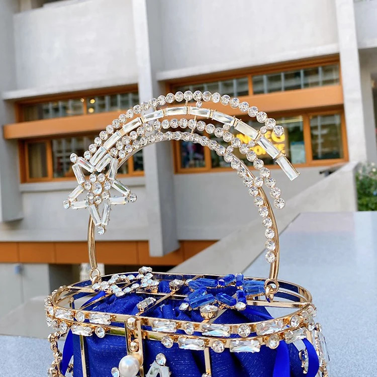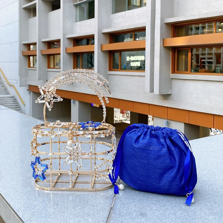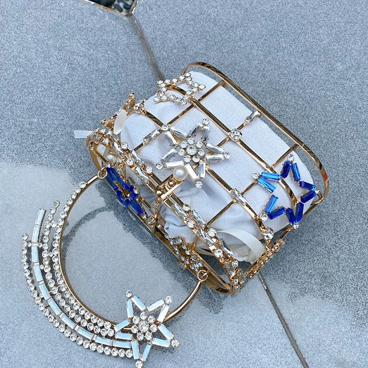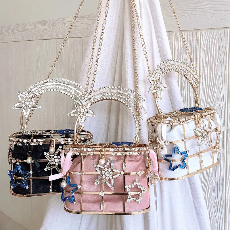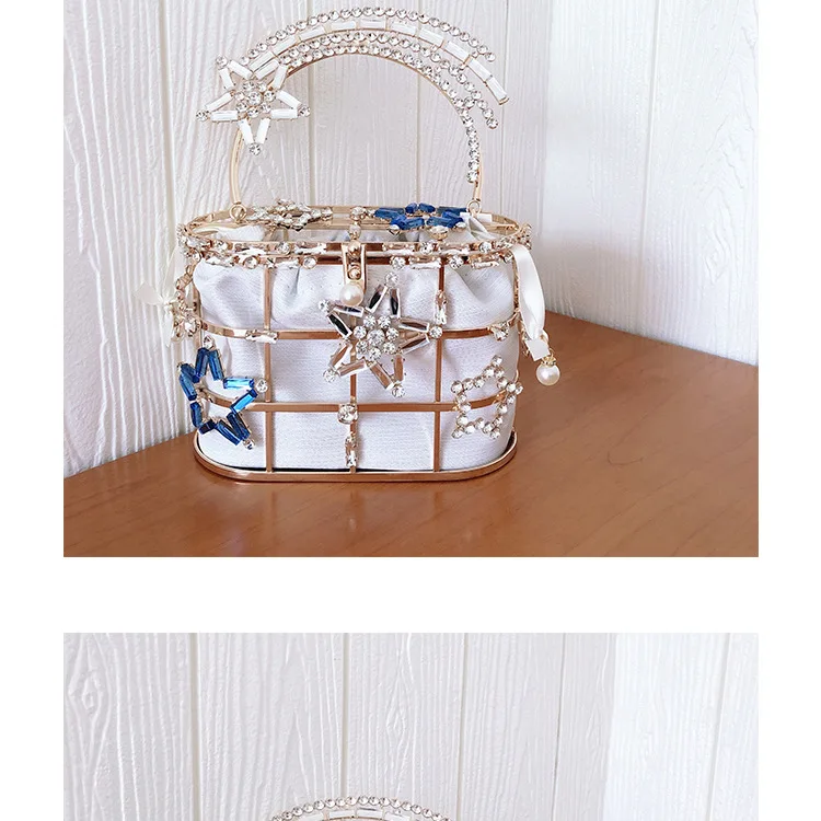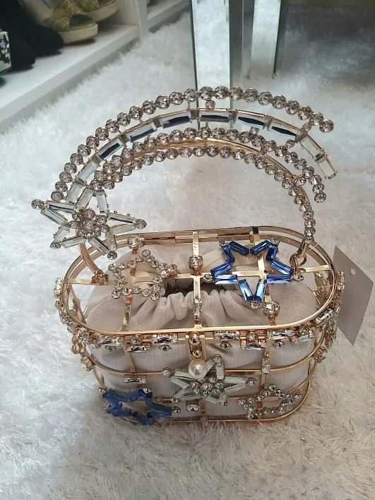 Роскошная металлическая корзина со стразами, женский клатч вечерние, модные кошельки и сумочки, дизайнерская вечерняя сумочка со звездами, дизайнерская сумка на плечо с цепочкой