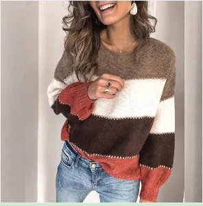 Женский вязаный свитер Antumn, винтажный вязаный пуловер с длинным рукавом, свободный джемпер большого размера