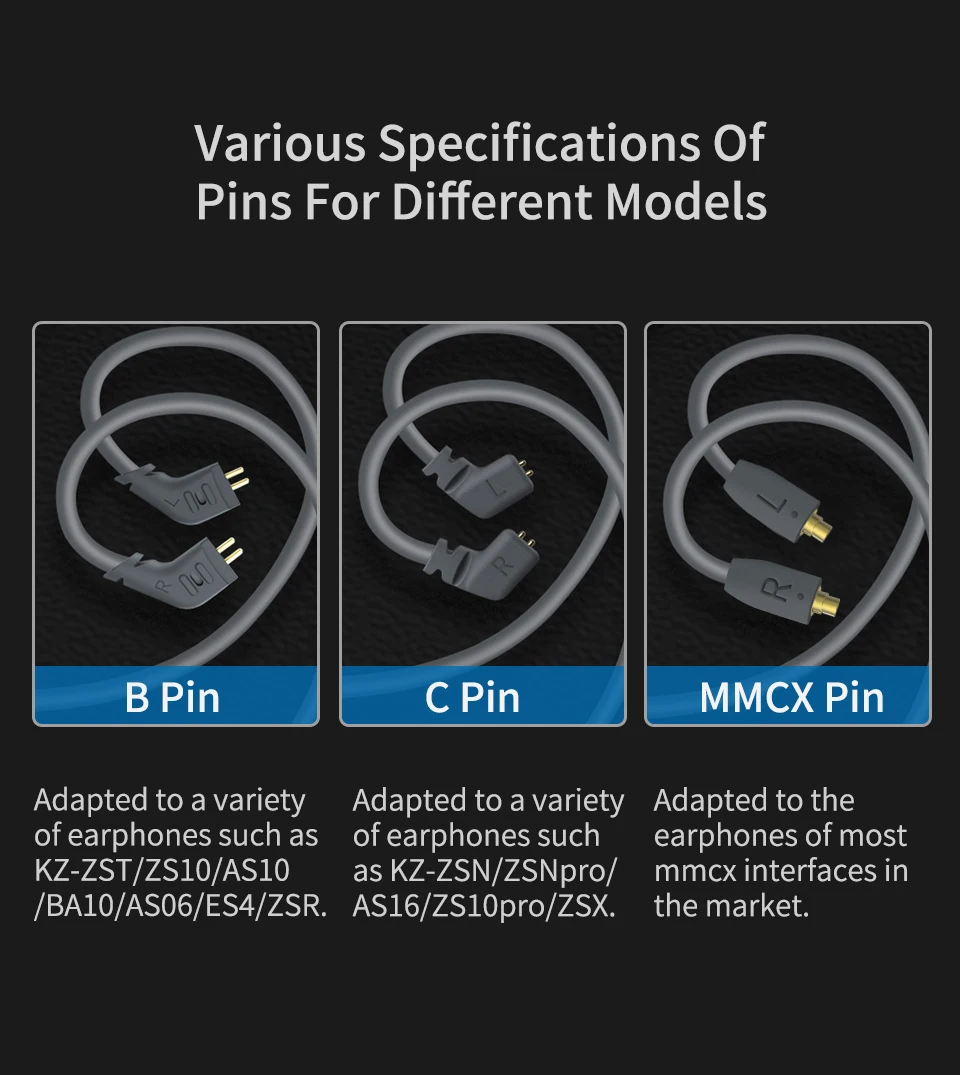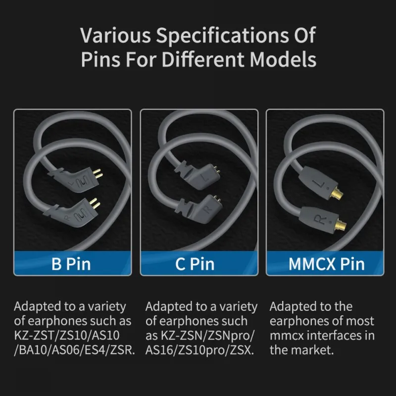 Название: кабель модуля Bluetooth KZДлина кабеля: 95 см + 5 смС микрофоном: ДаКомплектация: кабельВерсия:B PIN: совместим с KZ-ZST/ZSR/ED12/ES3/ES4/ZS10/AS06/AS10/BA10/ ZST X/EDX и другими моделями.Подходит для 0,75 мм-0,78 мм 2 PIN Тип штекера наушников.C PIN: совместим с KZ-ZSN/ZSN PRO/ZS10 PRO/AS16/AS12/ZSX/ZSN PRO-X/ZAX/ASX/ASF/DQ6 и другими моделями.Подходит для 0,75 мм-0,78 мм 2 PIN Тип штекера наушников.