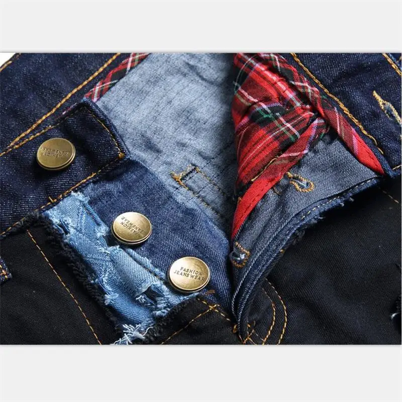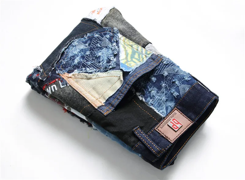 Мужские джинсы в европейском стиле; Сезон осень-зима; Новинка; Черные рваные джинсы с узором; Мужские джинсы с нашивкой; #248
