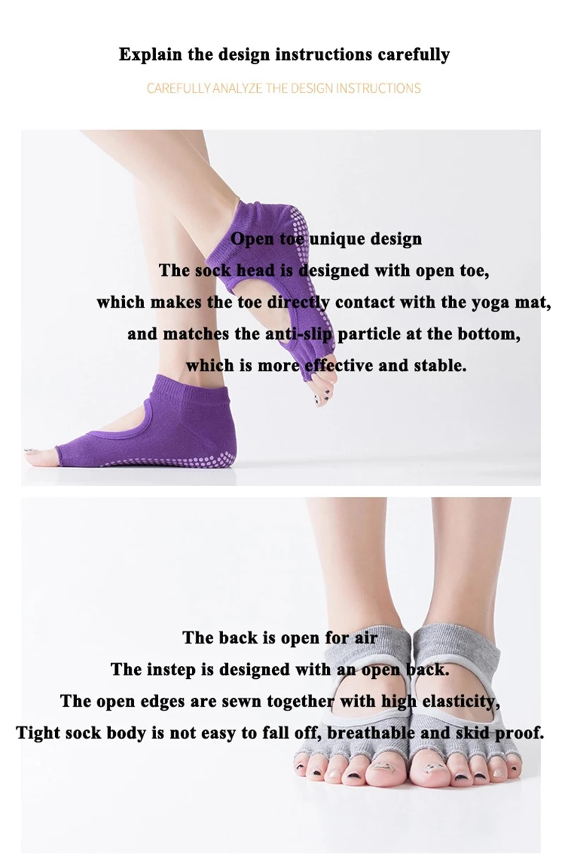 Женские нескользящие носки для йоги с открытой спиной и пятью пальц...
