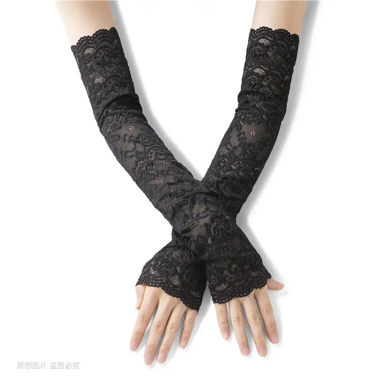 Женские черные, белые, бежевые, розовые солнцезащитные перчатки с длинными рукавами, кружевные перчатки, свадебное платье, перчатки для вождения, 43 см
