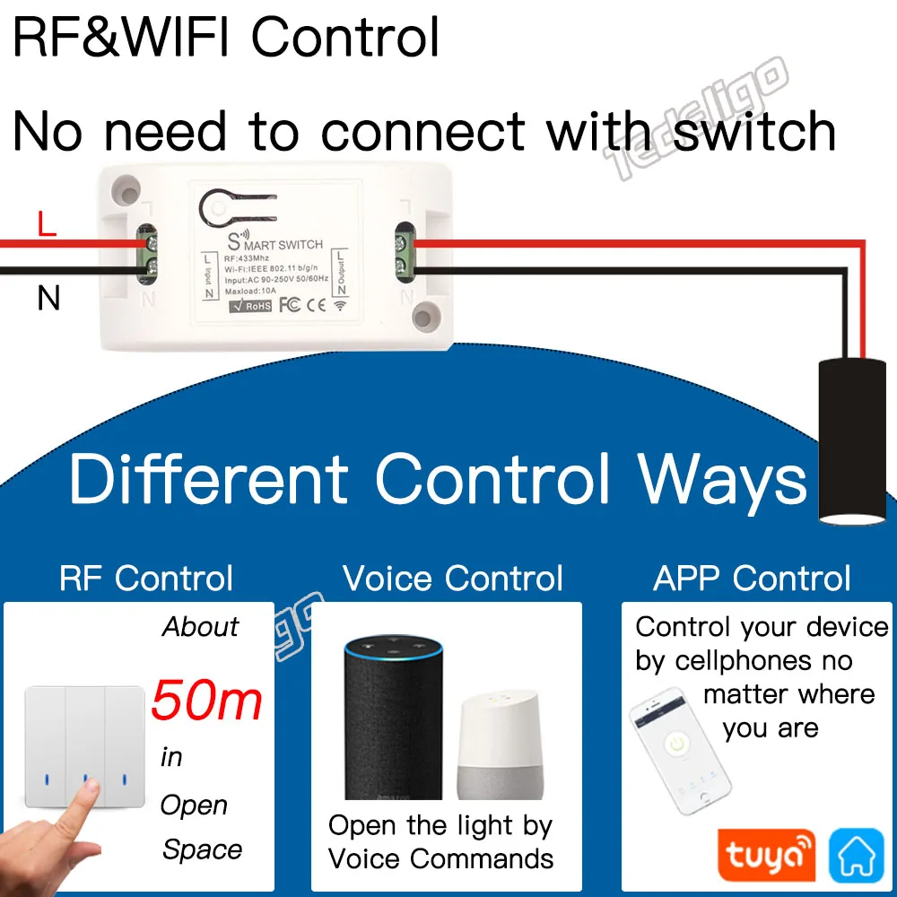 Tuya Smart Life wifi переключатель APP RF 433MHz AC 110V 220V светильник, контроллер, таймер, модуль работы с google для домашней автоматизации