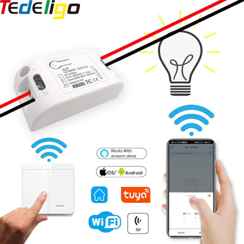 Tuya Smart Life переключатель Wi-Fi приложение RF 433 МГц AC 110V 220V светильник контроллера таймер модуль работает с google для лампа домашней автоматизации