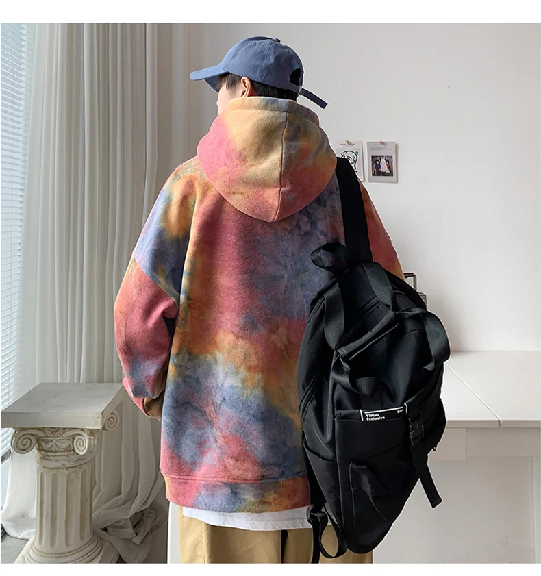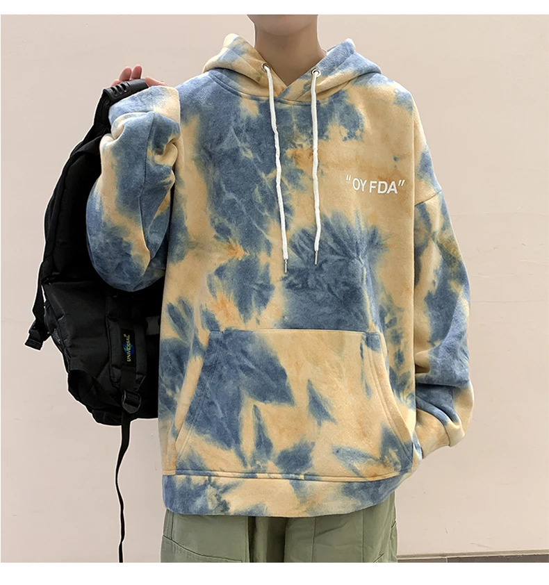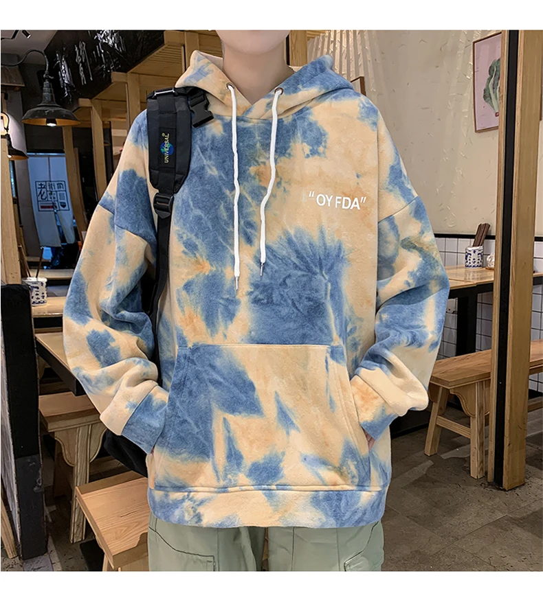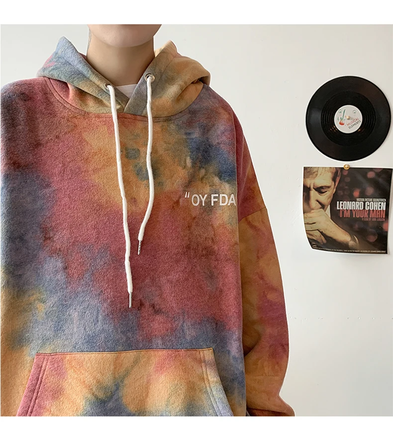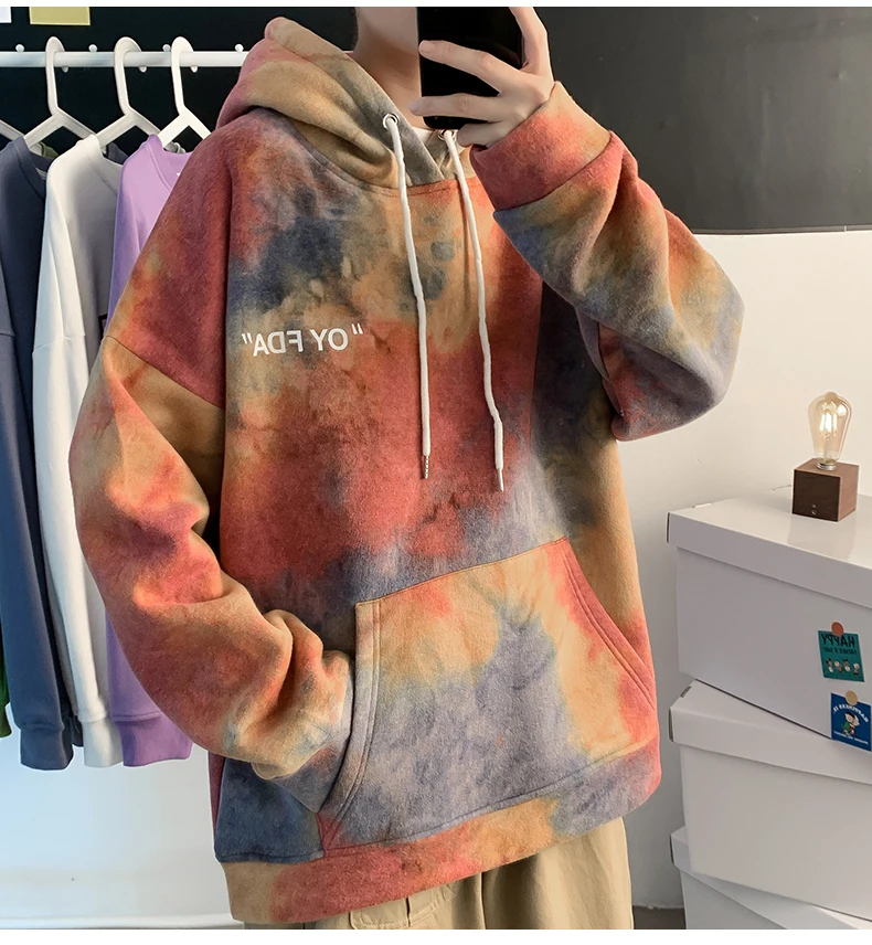 Толстовка LAPPSTER мужская с капюшоном, пуловер оверсайз с принтом тай-дай, модная уличная одежда в Корейском стиле, худи с карманами, осень 2022