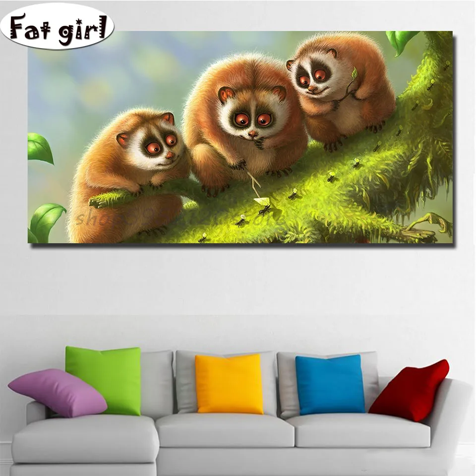 Три-лемура-с-муравья-настенная Алмазная мозаика diy Вышивка крестиком холст живопись квадратные круглые стразы наборы