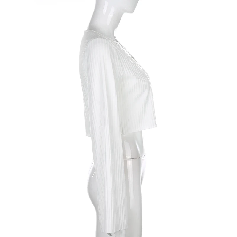 IAMSURE; Женские повседневные однотонные белые рубашки с длинными рукавами с v-образным вырезом осенние модные укороченные топы уличная одежда женская рубашка