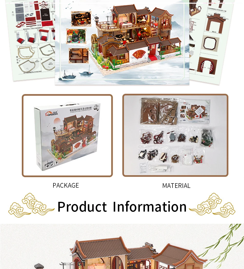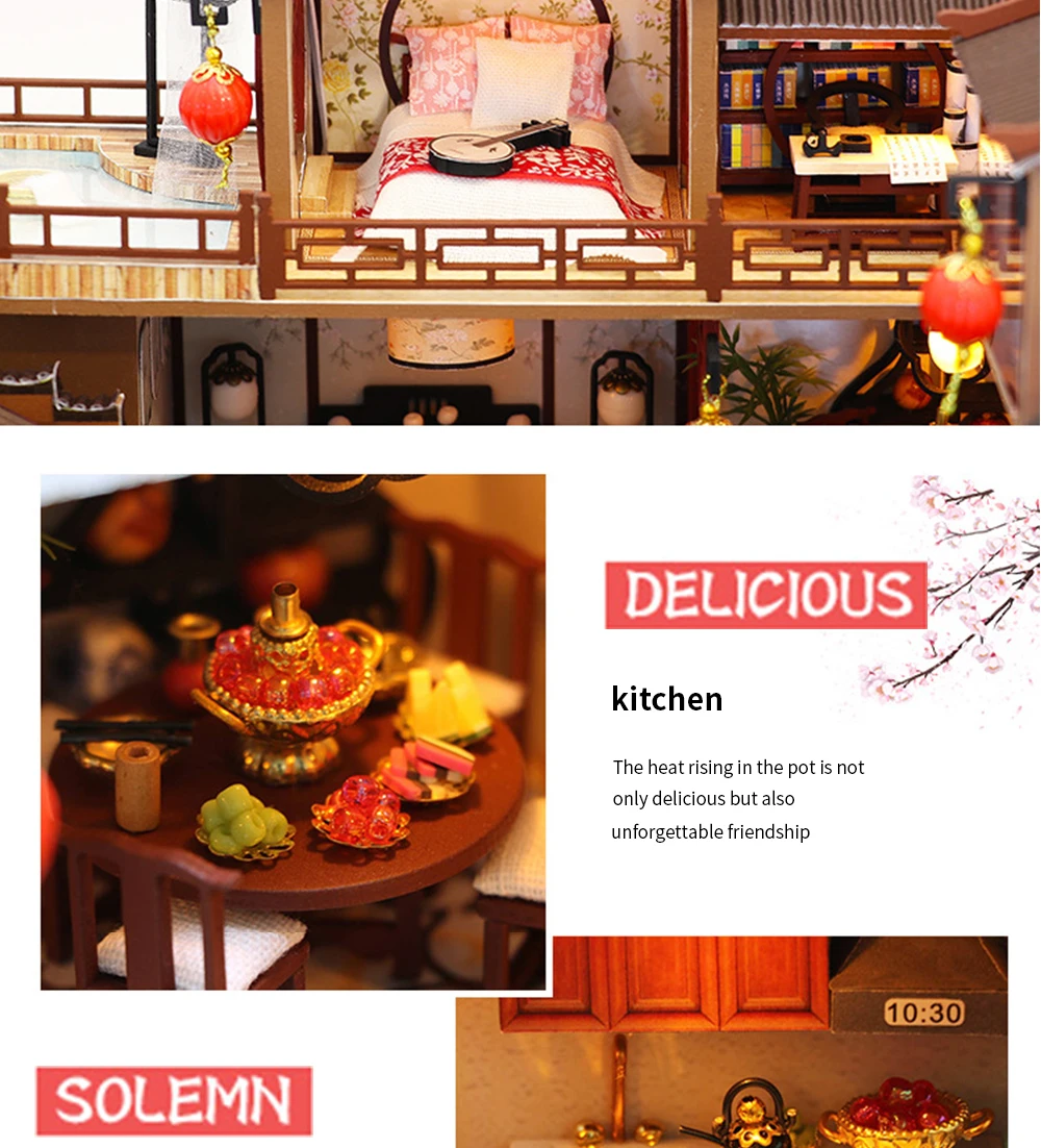 Набор миниатюрных кукольных домиков сделай сам, Деревянный Кукольный дом, мебель в китайском стиле, большая модель здания, подарок на день рождения, игрушки для детей