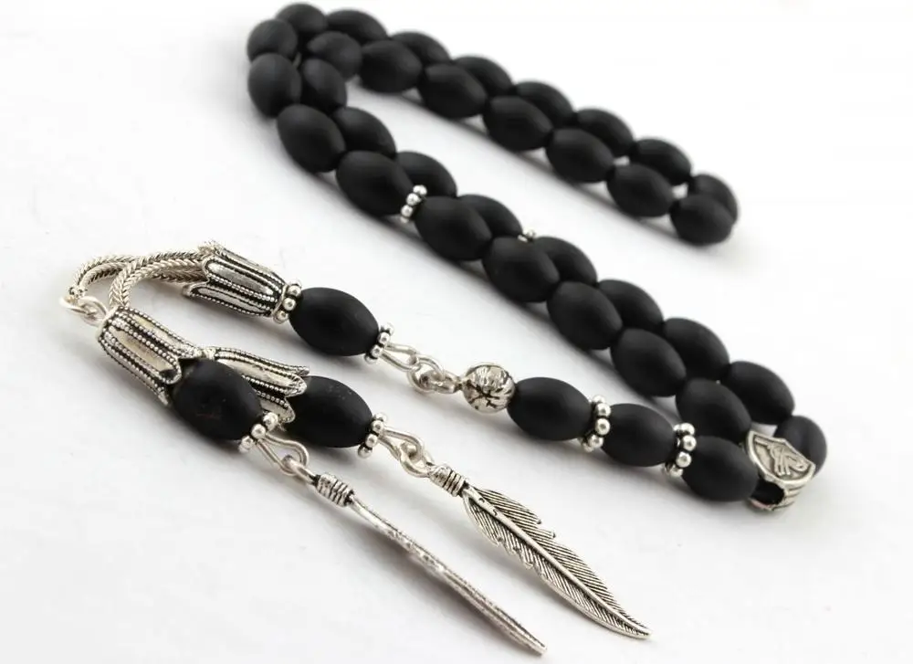 Название продукта: 925 Стерлинговое Серебро с ониксом камень Tasbih с кисточкой