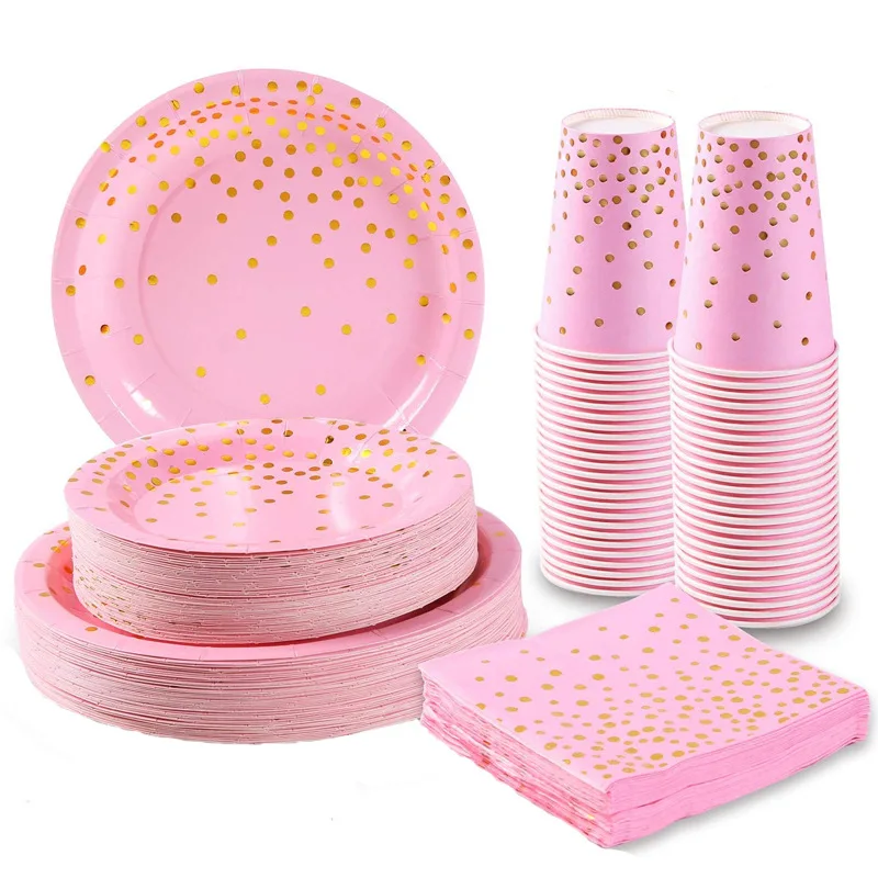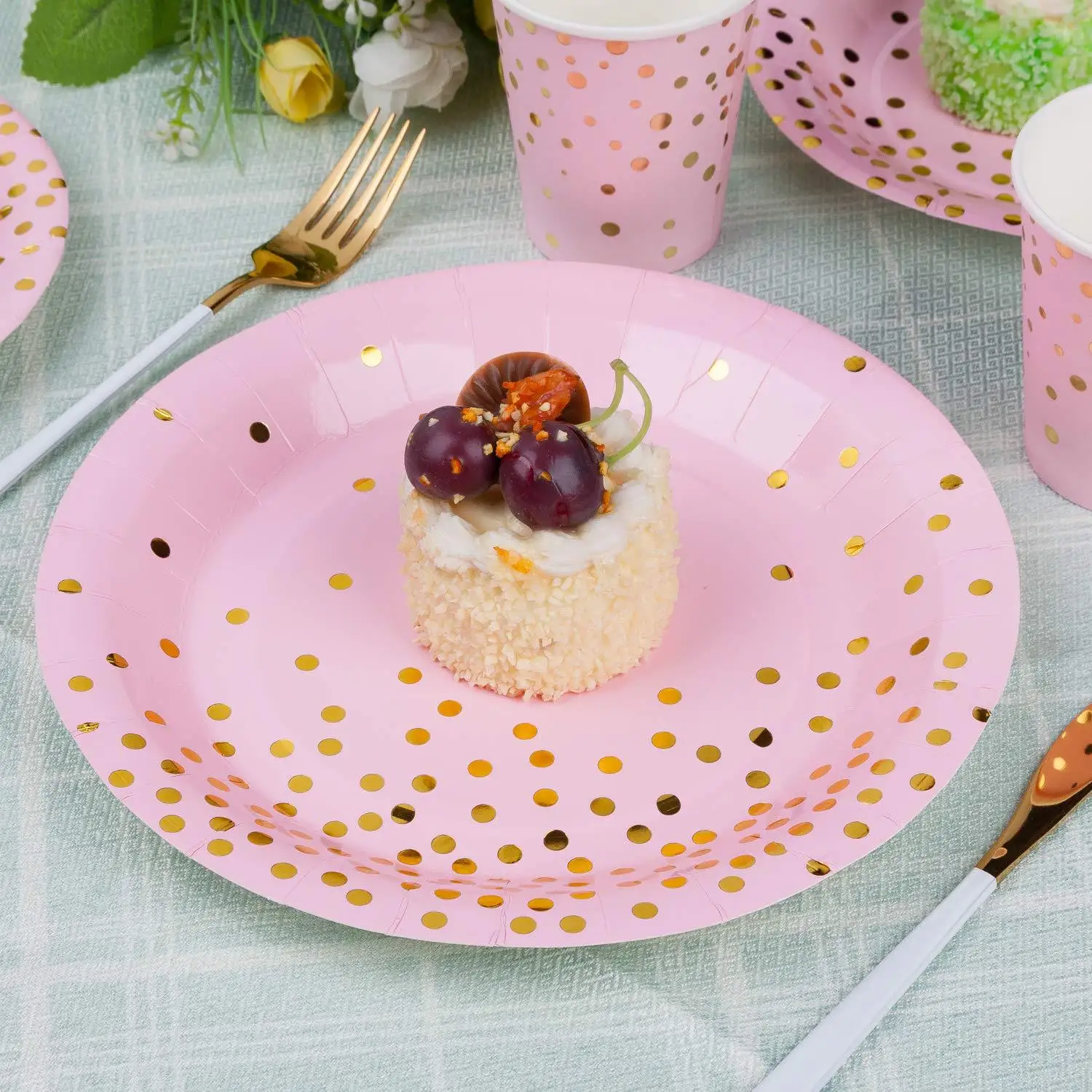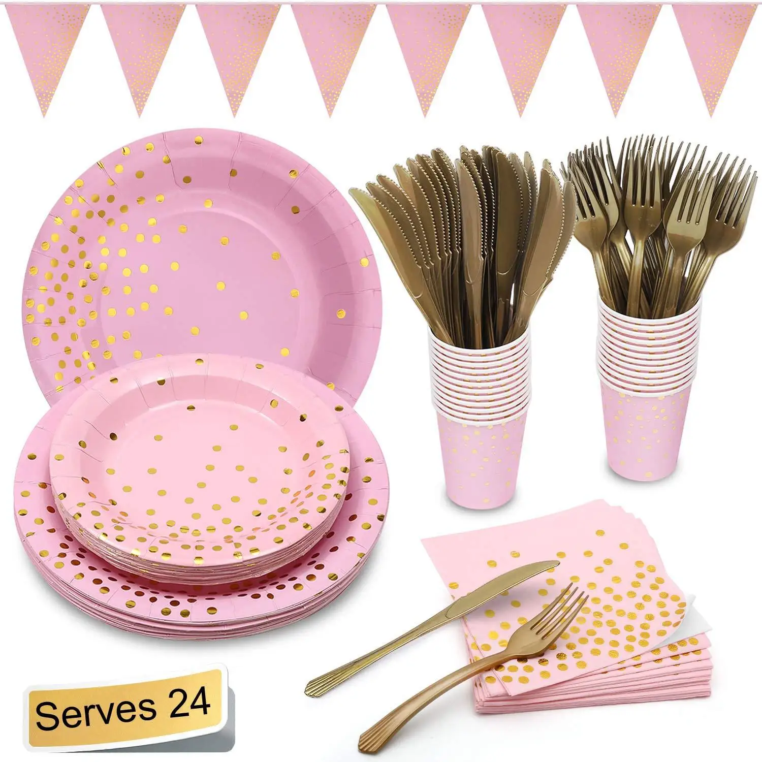 Розовая Золотая посуда для вечерние НКИ, бумажная тарелка, искусств...