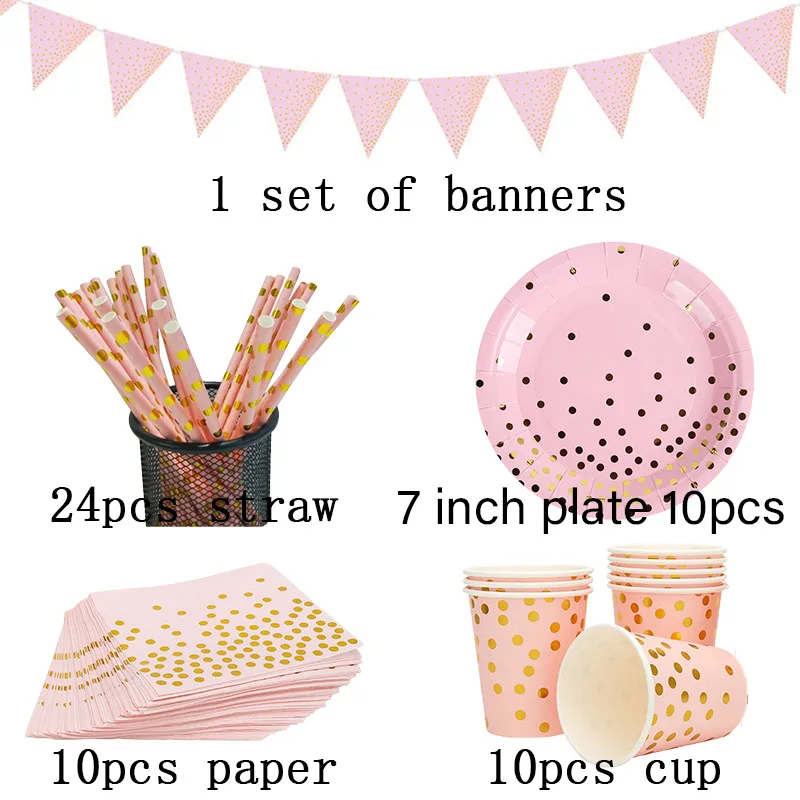 Одноразовая посуда, бумажное полотенце, баннер, солома, розовое золото, розовый цвет, украшение для дня рождения, свадьбы, Baby Shower, рождественские товары
