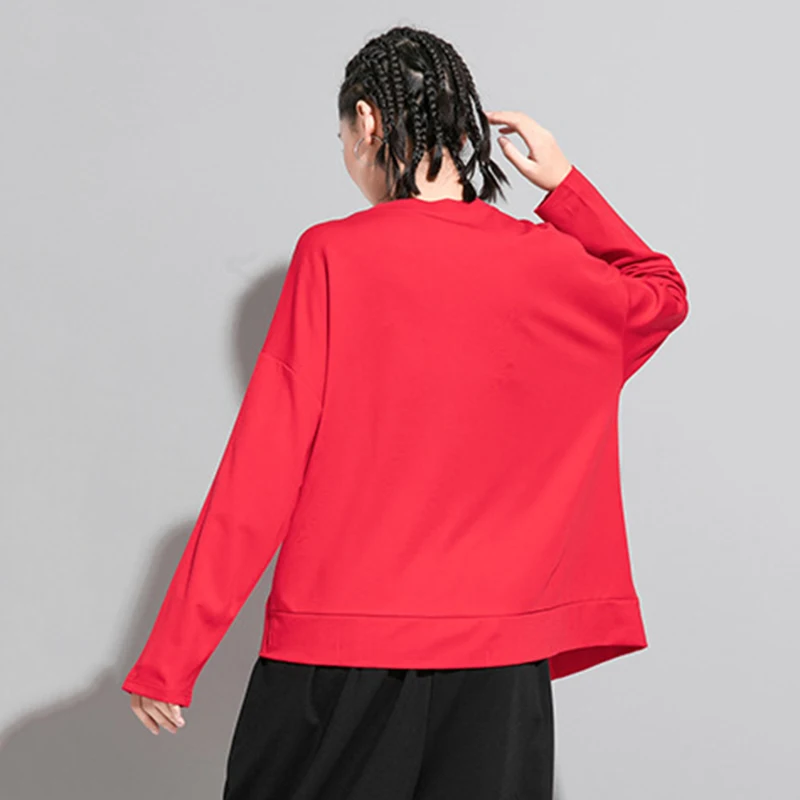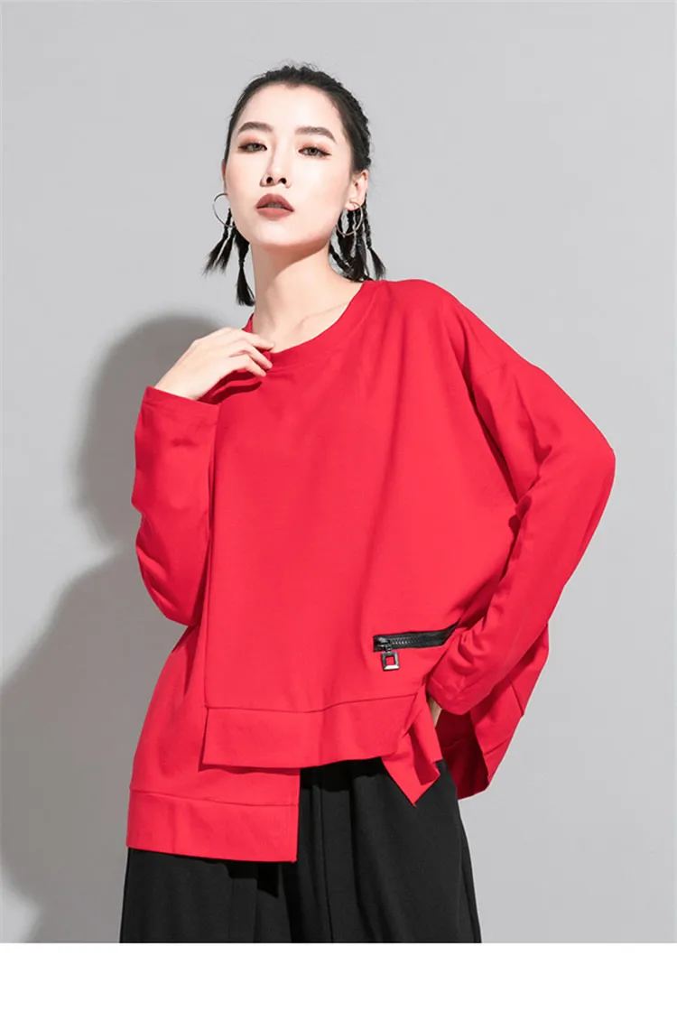 Женская Асимметричная футболка XITAO ZP3527, красная Повседневная футболка свободного кроя с длинным рукавом, универсальная, осень 2020