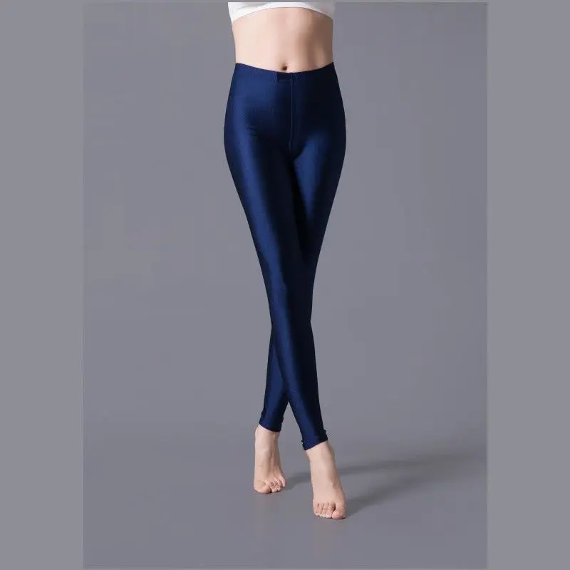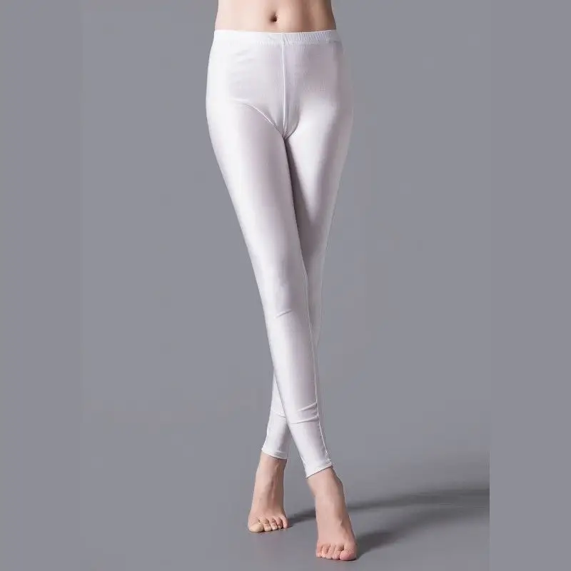 Женские блестящие леггинсы, Лидер продаж, леггинсы, однотонные флуоресцентные женские повседневные брюки, блестящие леггинсы