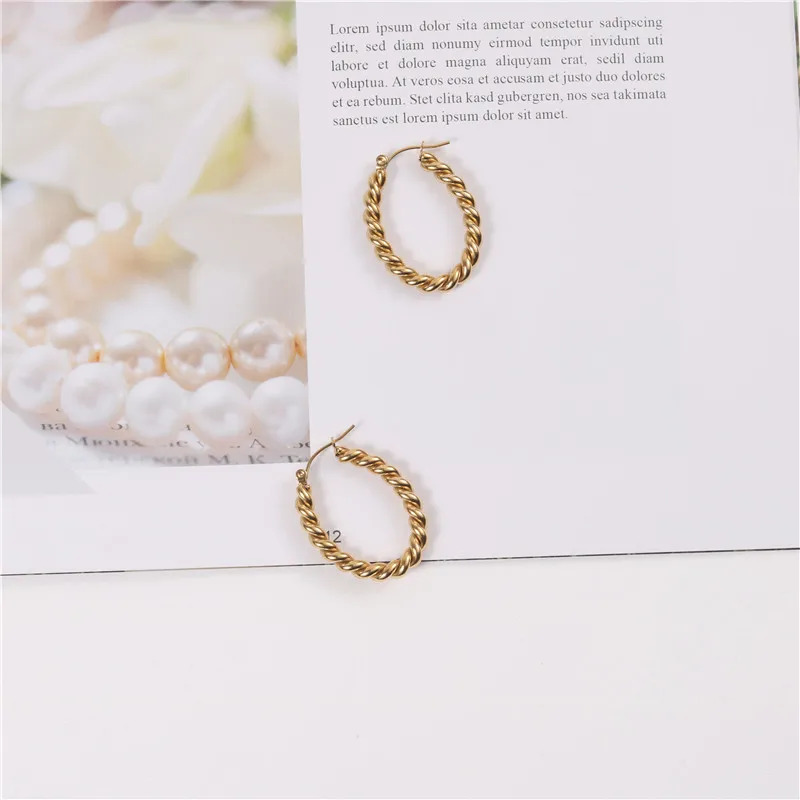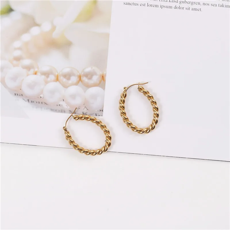 Joolim крученая веревка овальная серьги-кольца из нержавеющей стали для женщин