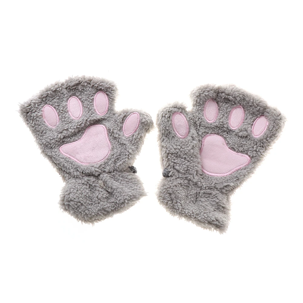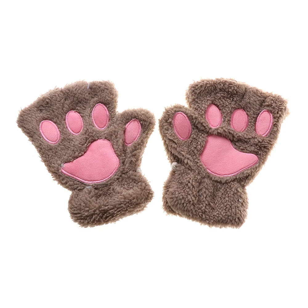 1 пара перчаток без пальцев медведь кошачья лапа Зимние теплые плюш...