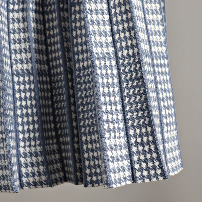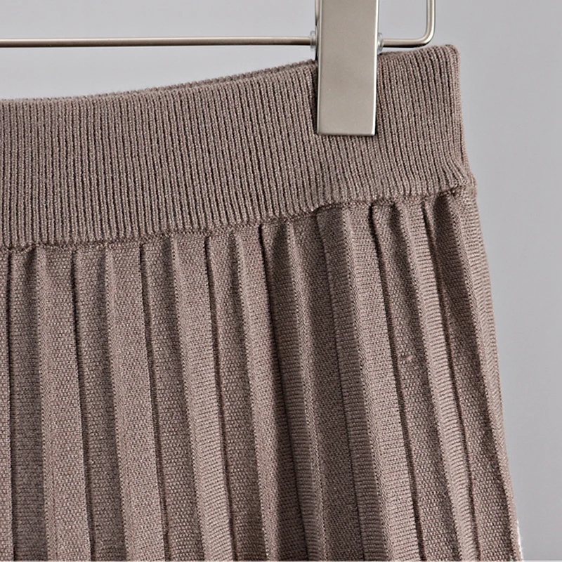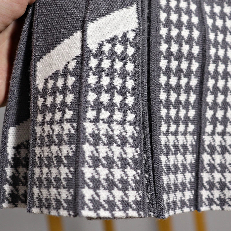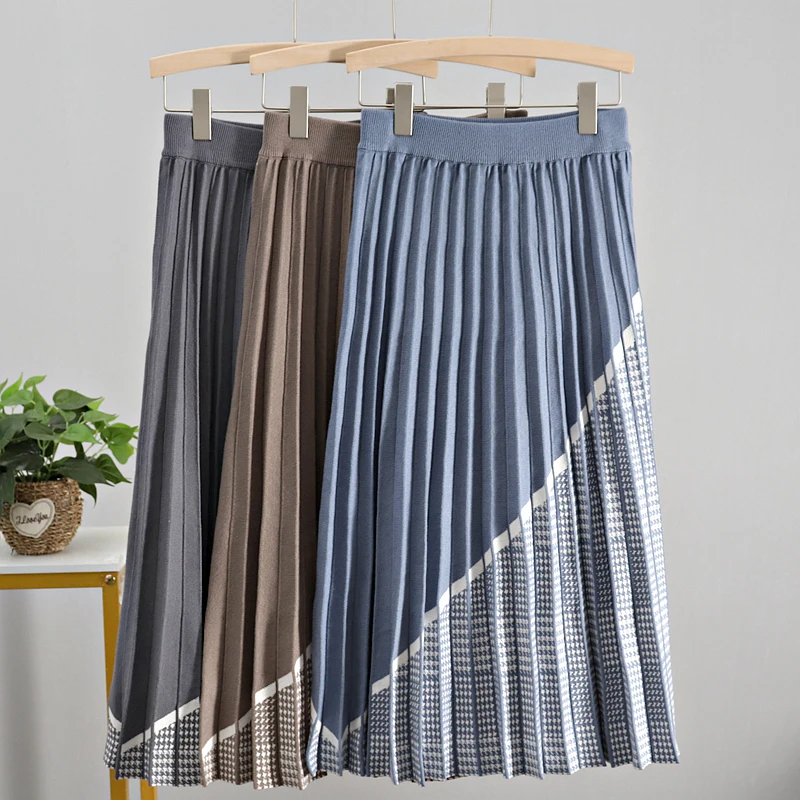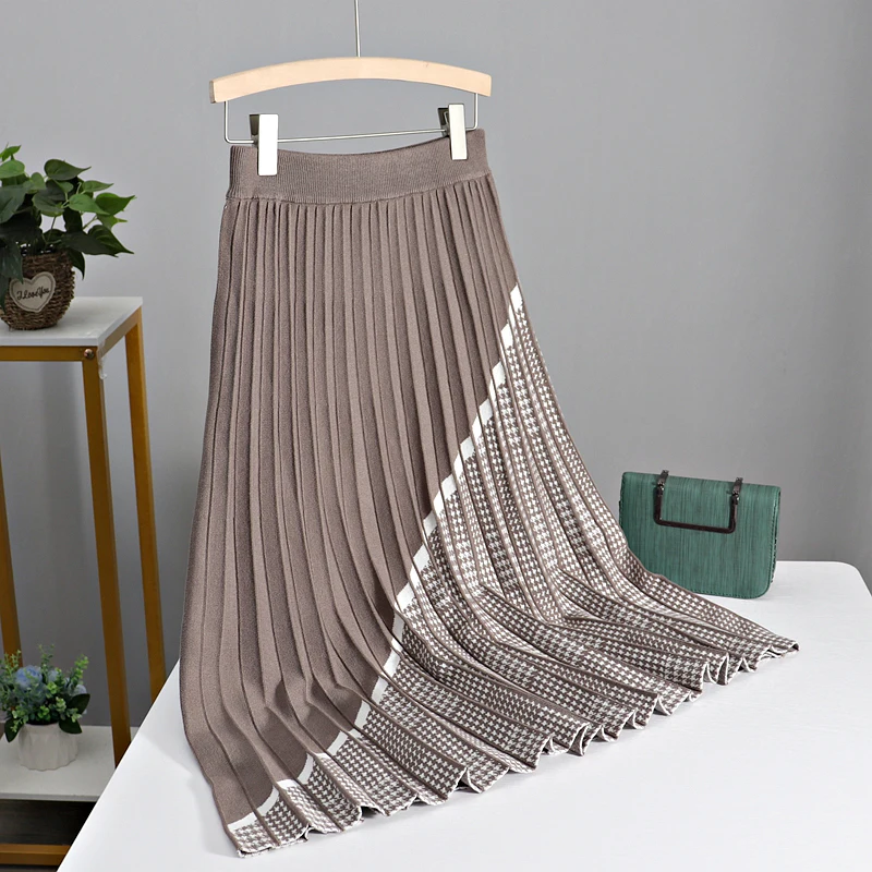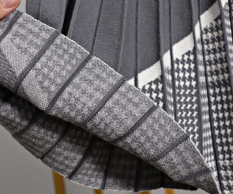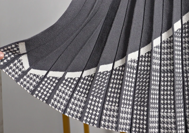 Женская длинная Плиссированная юбка-свитер, плотная вязаная клетчат...
